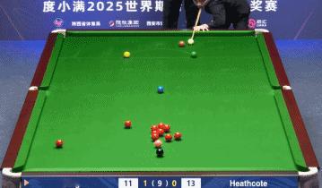 丁俊晖单杆100分清台,2-1领先希斯科特 北京时间10月9日,斯诺克西安大奖赛,丁俊晖与希斯科特的第2局,丁俊晖单杆100分清台,以111-13取胜,大比分2-0领先。 图一:丁俊晖率先上手,K球无法连接进攻,希斯科特得到13分后也进攻中断,双方陷入僵持局面下,丁俊晖一杆组合球再次上手。 图二:经过短暂调整,丁俊晖平稳入局。 图三:打进黑球后,丁俊晖以单杆100分清台拿下胜利。 从前两局来看,丁俊晖状态极佳,晋级无忧。