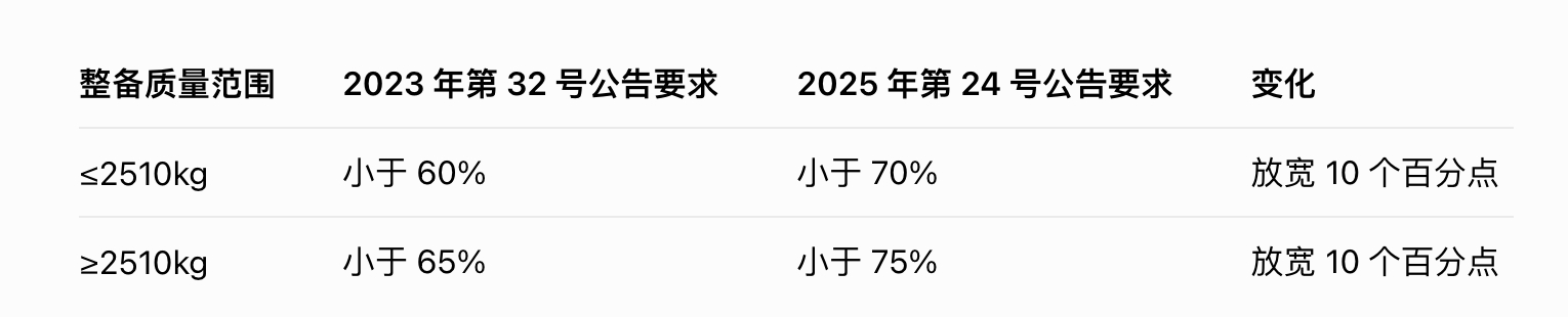 这一变化大幅提高了纯电动货车的能耗要求,表明政策引导纯电动货车向更高效节能的方向发展。