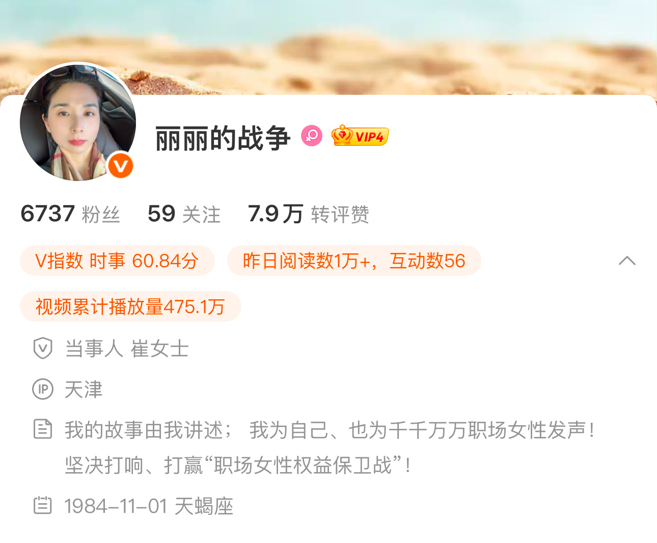 崔丽丽在主流社交平台均以“丽丽的战争”开了账号,数据都很好,完成了全平台布局