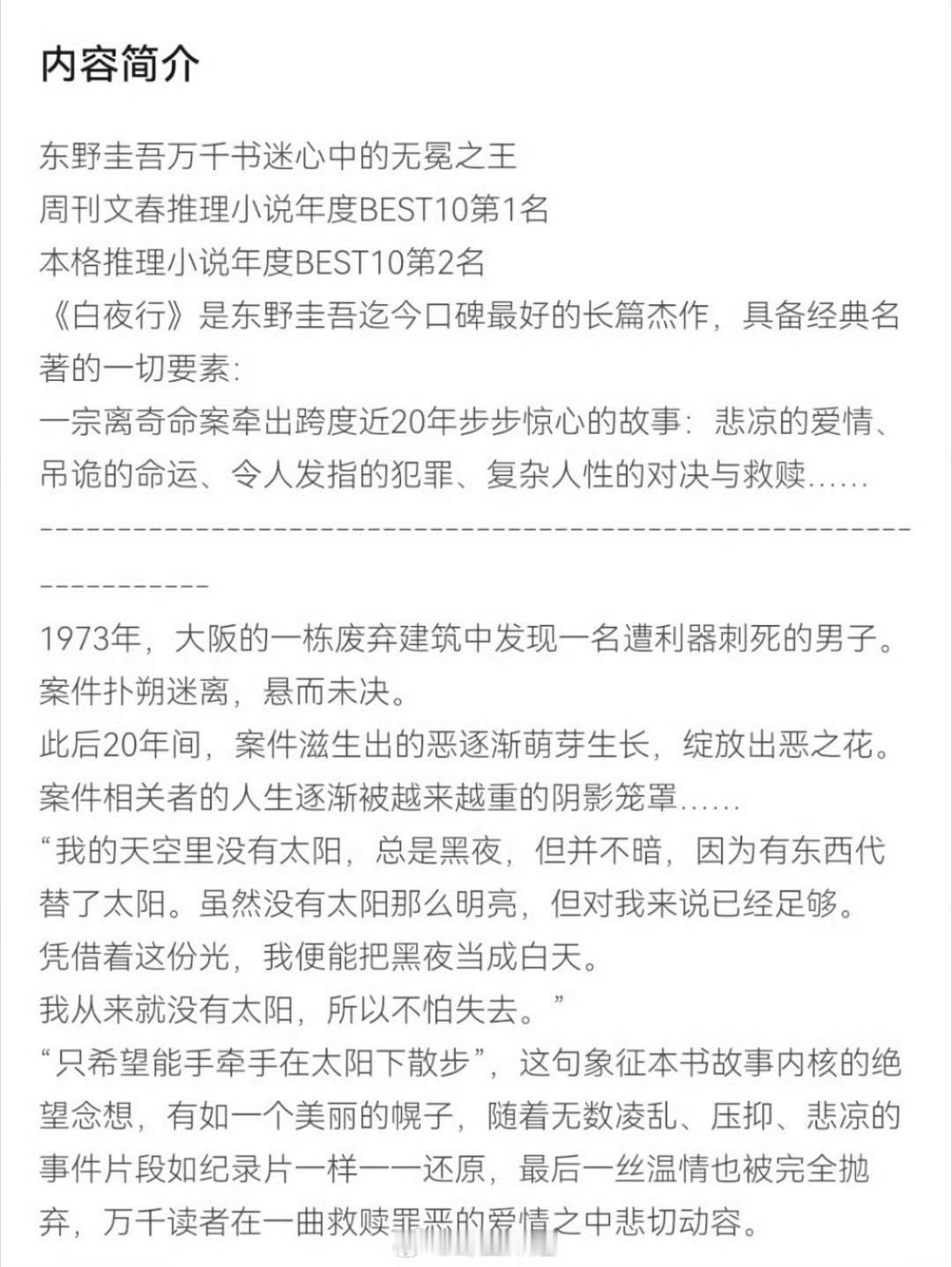 娱乐[超话]章若楠主演白夜行章若楠白宇帆继照明商店狗二搭了,《白夜行》期待!章