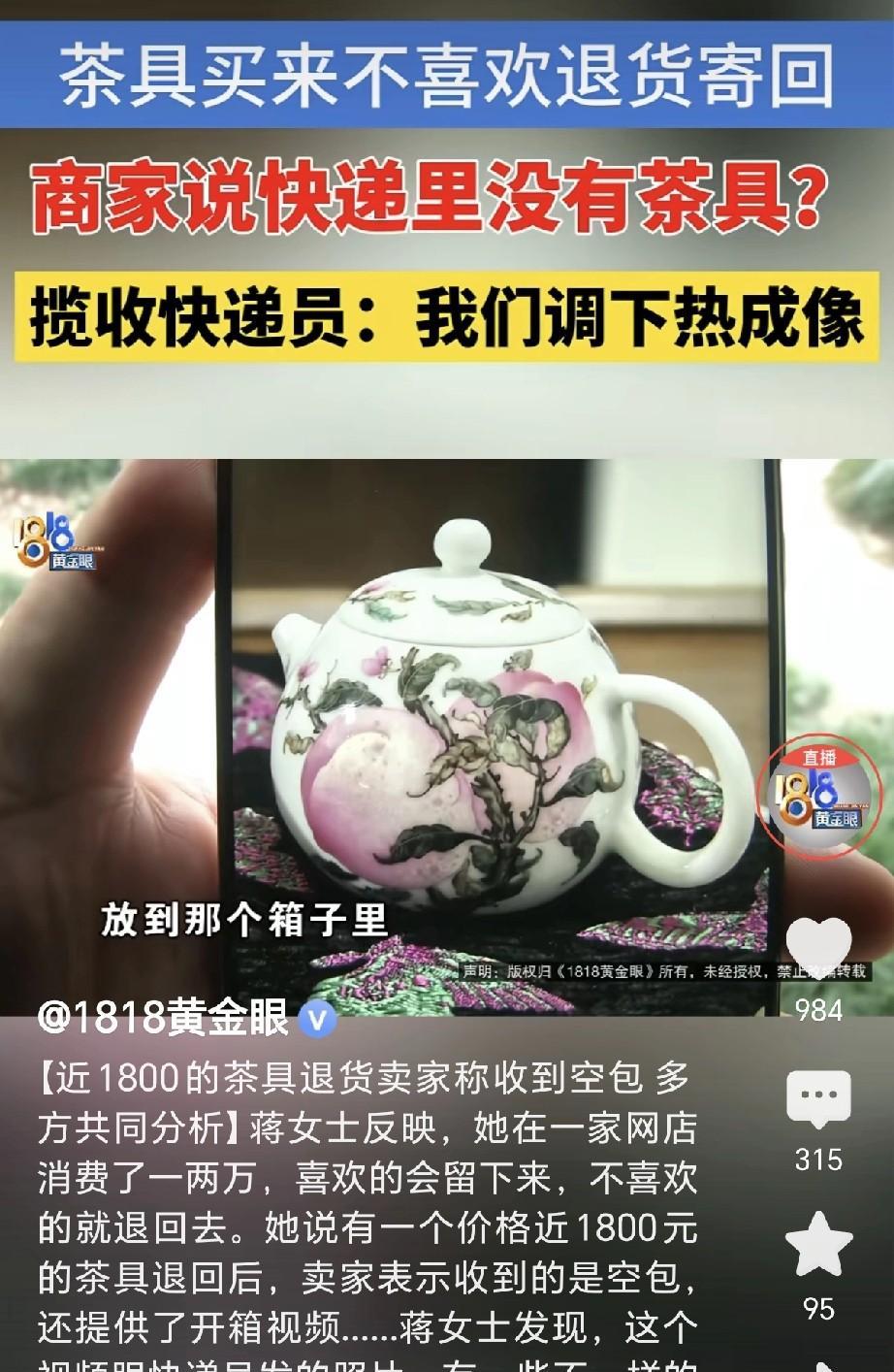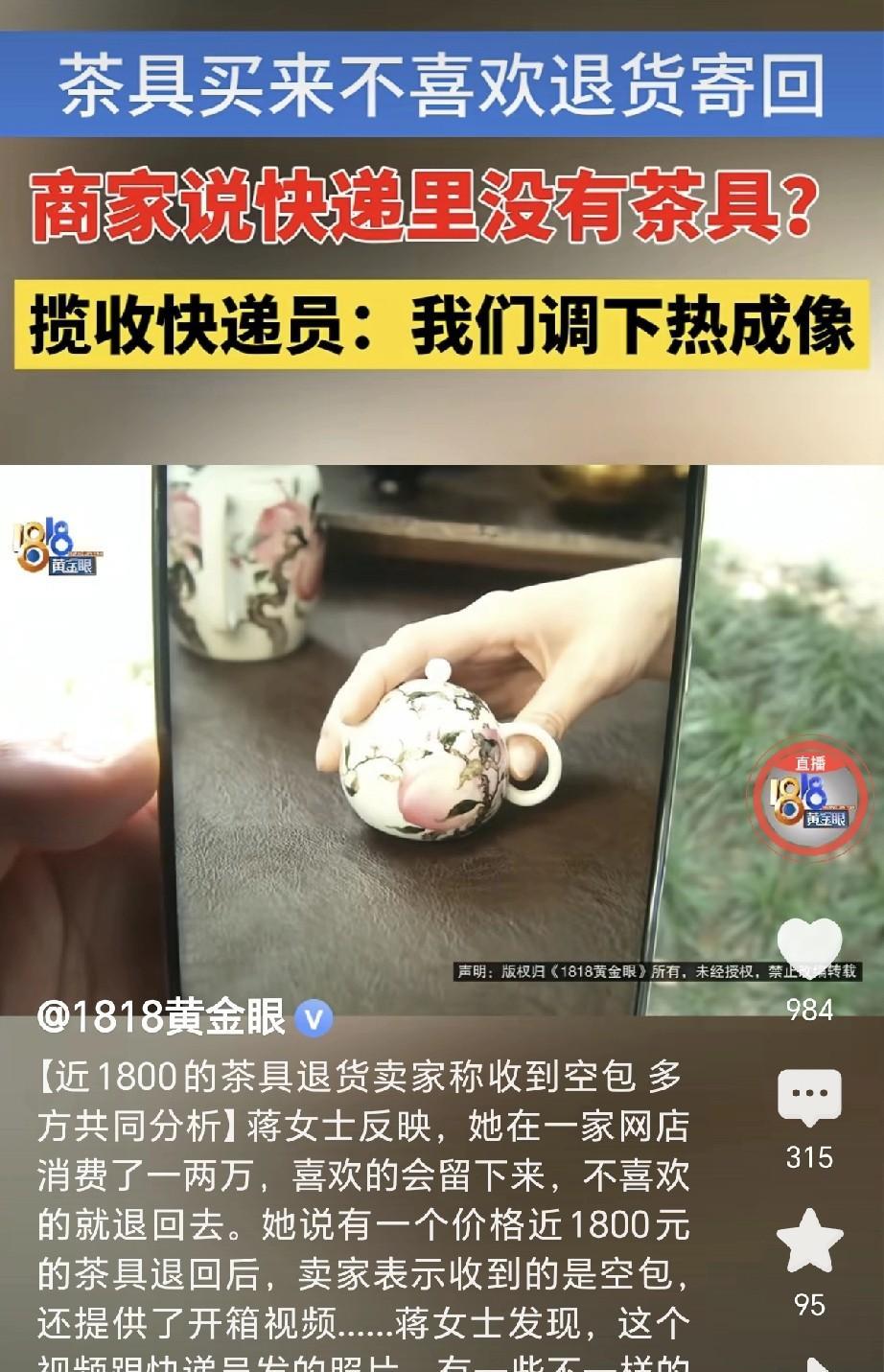 浙江杭州,一女子花1800元买了套茶具,可收到之后,发现茶具太小,女子要退货,她把茶具包好,放进箱子,快递公司封好后寄了回去,谁知商家收到快递,说是个空盒,里面没有茶具,还给她发来开箱视频,可女子发现两个问题,一是商家打开的包装和她寄出时的不一样,二是寄出时称重1.06kg,但商家称重是1.111kg,比她寄出时还重了,女子又问快递,快递员表示,可以调出热成像,一看便知中转时盒子里到底有没有茶具! 蒋女士有个爱好,她喜欢喝车,更喜欢收藏茶具,她看见有好的茶具,简直就挪不开脚步。 她在网上某平台发现一个店铺,里面的茶具非常的漂亮,蒋女士成了这家店铺的常客,她在店里花了一两万元购买茶具。 等到收货之后,打开一看,喜欢的就留下,不喜欢的就退货,一直以来,她退过的货都没有出过问题。 9月25号这天,蒋女士又在店里观看,突然看到一把元旭窑粉彩陶西施壶,这把壶图案精美,一下就吸引住了蒋女士的眼睛。 这把壶价格昂贵,价格将近1800元,蒋女士非常喜欢,她果断下单,很快就收到了快递。 可是她打开包裹,一看到实物,她大失所望,因为壶虽然看起来不错,可壶身太小,根本不像图片显示的那样。 蒋女士决定退货,她用隔膜把茶具包好,然后放进箱子,9月30号这天,她通过小区的蜂巢快递柜,选择了某丰快递寄回退货。 蒋女士以为,快递寄回,还会和往常一样顺利,可是她万万没有想到,10月4号商家收到了货后,店铺却联系蒋女士说,他们收到的是空包,里面并没有那把壶。 蒋女士惊呆,这不可能,我明明亲手装好,还用泡沫隔膜给包好了才搁进了箱子。 之后揽收包裹的快递员也给她发了照片,显示产品的盒子的确是包了气泡膜的。 但是商家给她发来的开箱视频里显示,盒子外面压根就没包。 这也就是说,商家给的开箱视频里,包装和她寄出的不一致。 蒋女士还有个疑问,快递员告诉她说,揽收当天晚上,把包裹称重了一下,显示是1.06kg。 而商家在收到后的称重则是1111g,比寄出时还重了51克。 蒋女士觉得商家称重不对,他们应该在包裹完整情况下称重,不该在打开后再称。 蒋女士找到记者,希望能得到帮助,她想知道包裹到底去了哪里?她既怀疑商家,又怀疑快递。 这家店铺是在某音平台,蒋女士要求平台退回她买壶的钱。 可店铺却说,快递退回来时,他们没当面验货,收到时就很轻,就是个空盒。 记者询问,一把壶一般能有多少的重量?店铺回复,起码也有4两,也就是200g,4到5两的都算正常。 店铺还说,快递并没有拍货品照片,也没有检查货物,不排除是快递弄破了。 如果蒋女士确定寄回了壶,那肯定就是快递方面出现了问题。 快递员王先生却有不同的看法,他觉得这件事有好几种的可能。 第一就是寄件人根本就没放茶具,第二就是也许商家是二次拆包,因为纸箱内的包装情况,和商家视频里拍的不一样。 商家只录了拆包正面,背面他们没有录到,而快递员拍了纸箱里面整个包装,两边确实有汽泡膜垫。 记者奇怪,难道快递员揽件时就没有验视一下茶具吗? 快递员表示,这个没啥,他会联系站点调出热成像,也会提供快递在中转时,里面到底有没有东西。 但平台客服表示,因为商家有完整的拆包视频,因此商家举证大于蒋女士,平台要求蒋女士也可以提供完整的打包视频。 目前,蒋女士表示,她会先等快递公司反馈取证,再向平台取证。 那么,这件事在法律上是怎么认定的呢? 《民法典》第610条规定: 标的物不符合质量要求,致使不能实现合同目的的,买受人可以拒绝接受标的物或者解除合同。 蒋女士购买的茶具因壶身太小,不能实现其合同目的,她有权退货。 蒋女士按照正常流程将茶具包装好并寄回,若最终能证明商家收到的包裹确实为空包,而且并非是蒋女士的责任,那么根据该条规定,标的物毁损、灭失的风险应由商家承担,商家应退还蒋女士货款。 《民法典》第832条规定: 承运人对运输过程中货物的毁损、灭失承担赔偿责任。但是,承运人证明货物的毁损、灭失是因不可抗力、货物本身或者合理损耗以及托运人、收货人的过错造成的,不承担赔偿责任。 快递公司作为承运人,有义务将蒋女士寄回的茶具安全运输至商家处。 快递公司若不能证明货物的异常是由不可抗力或蒋女士及商家的过错造成,就应当对货物的丢失承担赔偿责任。 《民法典》第620条规定: 买受人收到标的物时应当在约定的检验期限内检验。没有约定检验期限的,应当及时检验。 商家在收到包裹时没有当场验货,之后开箱称收到的是空包, 商家提供的开箱视频显示包装与蒋女士寄出时不一致,称重情况也存在疑问。 商家仅以单方的开箱视频主张收到空包,证据不够充分。 若快递公司的热成像等证据能证明运输过程中包裹内有茶具,那么商家就应当承担举证不能的不利后果,退还蒋女士货款。 对此,你怎么看? 关注@王哥说法 多学法律少吃亏!