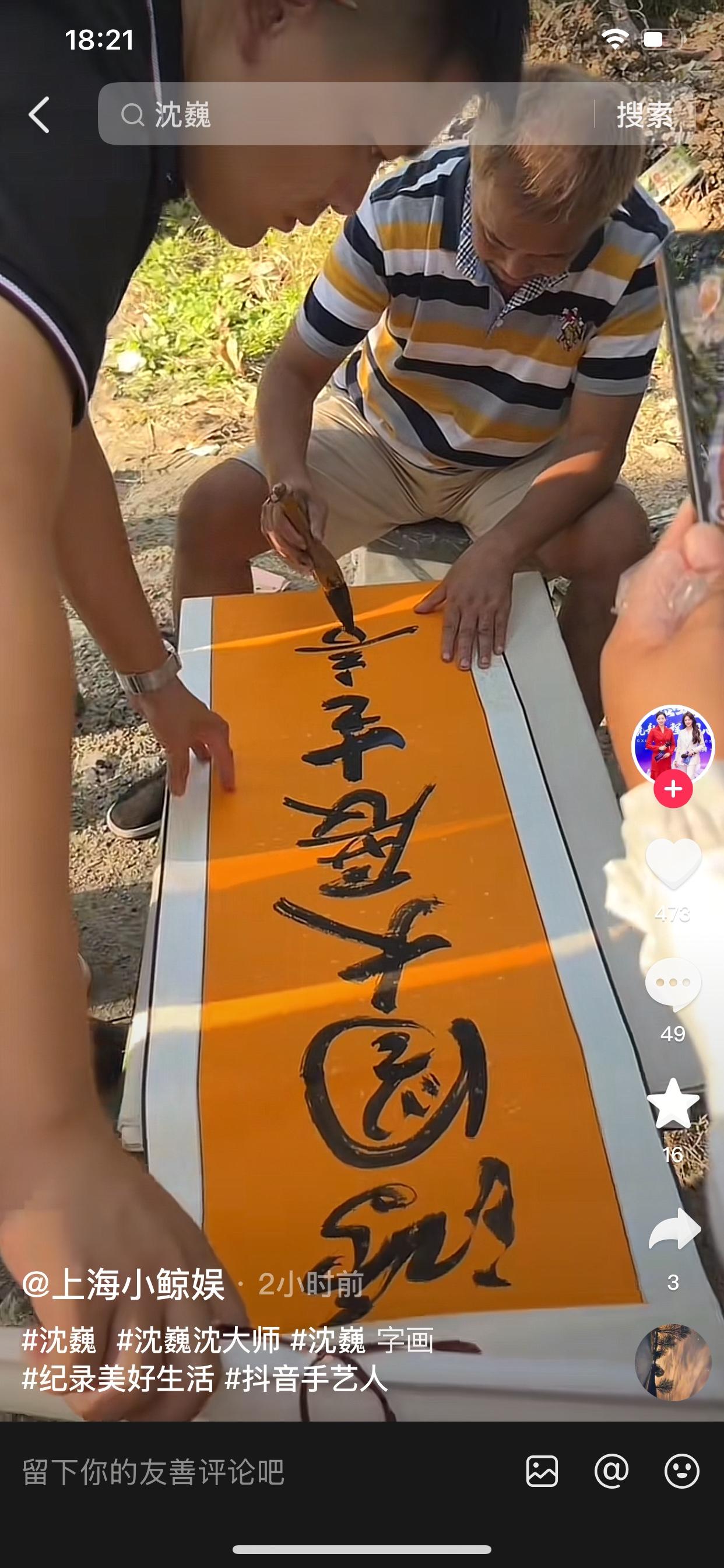 今天沈巍在另一个地开笔写字画,四周树木茂密,他在里面的一个空地上摆摊。 在现场没有多少人,几个核心圈主播和几个粉丝。目前想见沈巍的粉丝,需要和助理小刘预约排队,排到你了,小刘才会把沈巍当天的地址发给你,见一面不容易啊,必须要求几幅墨宝[笑哭]