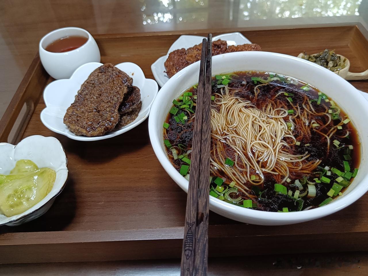 昨天在嘉善吃昆山奥灶面,一碗大排面加素鸡,价格在23元。这价格比上海要便宜多了,
