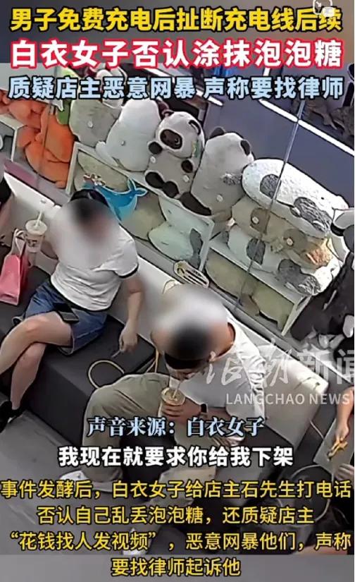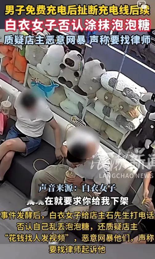 上热搜恶意拔断人家充电线事件最新进展,其中女子指责店主网暴她! 2025年10月4日山东烟台,手机店店主石先生遇糟心事——四位游客来免费充电,半小时后黑衣男突然扯断充电线,同行白衣女往沙发缝塞东西。 石先生说,当天中午11点左右,2男2女进店,他好心提供免费充电位。可等人走后,他发现充电线被撕断,沙发缝里有异物,一开始以为是口香糖,后来觉得可能是吸管包装纸。 气不过的石先生把视频发上网,想讨个说法。没想到黑衣男子肖某打电话道歉,话里却狡辩“你凳子太挤”,态度敷衍得让石先生直说“不接受”。 更闹心的是同行的白衣女子,抢过电话咄咄逼人:“你发视频网暴我!我全程不知道,没塞口香糖,赶紧下架不然找律师!” 其实石先生的视频没指名道姓,只拍了四人的行为。网友看到后议论纷纷,有人说女子塞东西没素质,有人替店主抱不平——好心换来了断电线和指责。 为什么女子要盯着店主起诉? ①她觉得视频里有自己的画面,网友讨论让她“被网暴”; ②她认定店主是“始作俑者”,没考虑是网友自发评论; ③她可能没意识到,自己塞东西的行为本身才是争议点。 石先生挺委屈,原本免费充电是为了方便游客,结果换来一根断电线、一通狡辩的电话,还有女子的威胁。有网友留言:“店主没说女的,是网友说的,她起诉店主干嘛?”这话戳中不少人——好人做善事,怎么反而成了“被告”? 我觉得,这事里石先生没做错,好心不该被糟蹋。女子要是觉得被网暴,该找乱说话的网友,不是对着店主撒气。毕竟视频里的行为是事实,不能因为怕被说就怪曝光的人。 有网友说:“吸管包装纸也不能塞人沙发里,抓手里也行啊!”这话没毛病,公共场合的素质,从来都是细节里的自觉。 这事你怎么看?是店主不该发视频,还是女子该反思自己的行为?