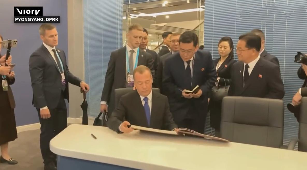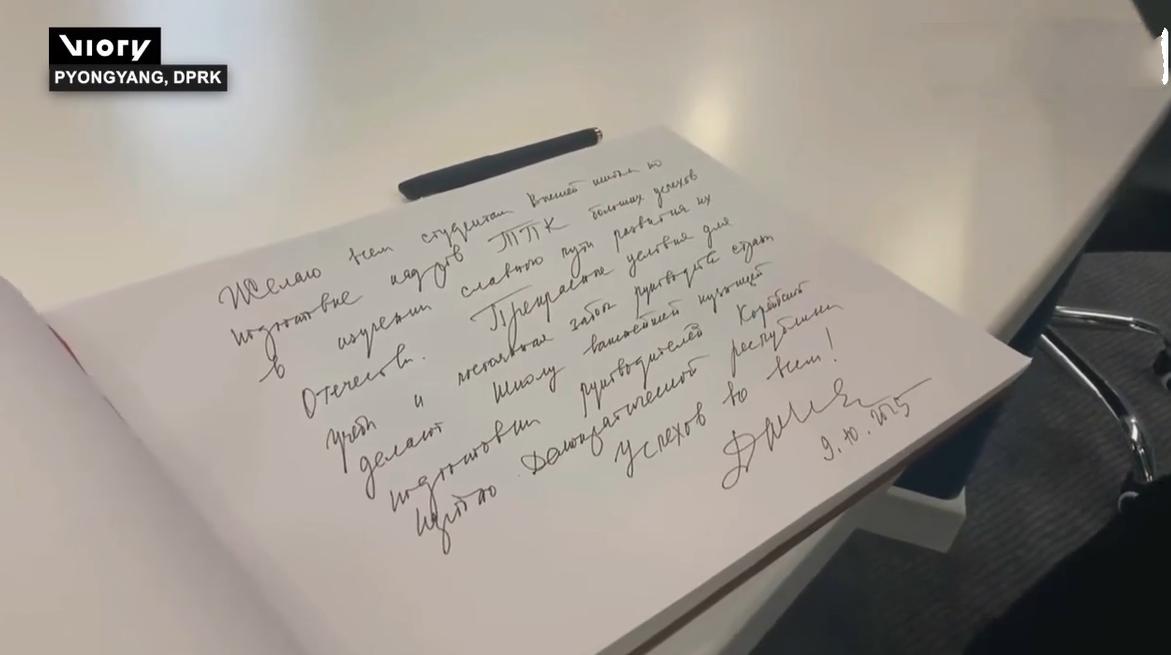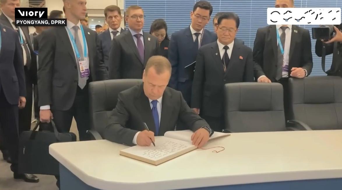 梅德韦杰夫留言本上写字,字迹曝光!10月9日他访朝鲜,在工作人员的带领下参观,还