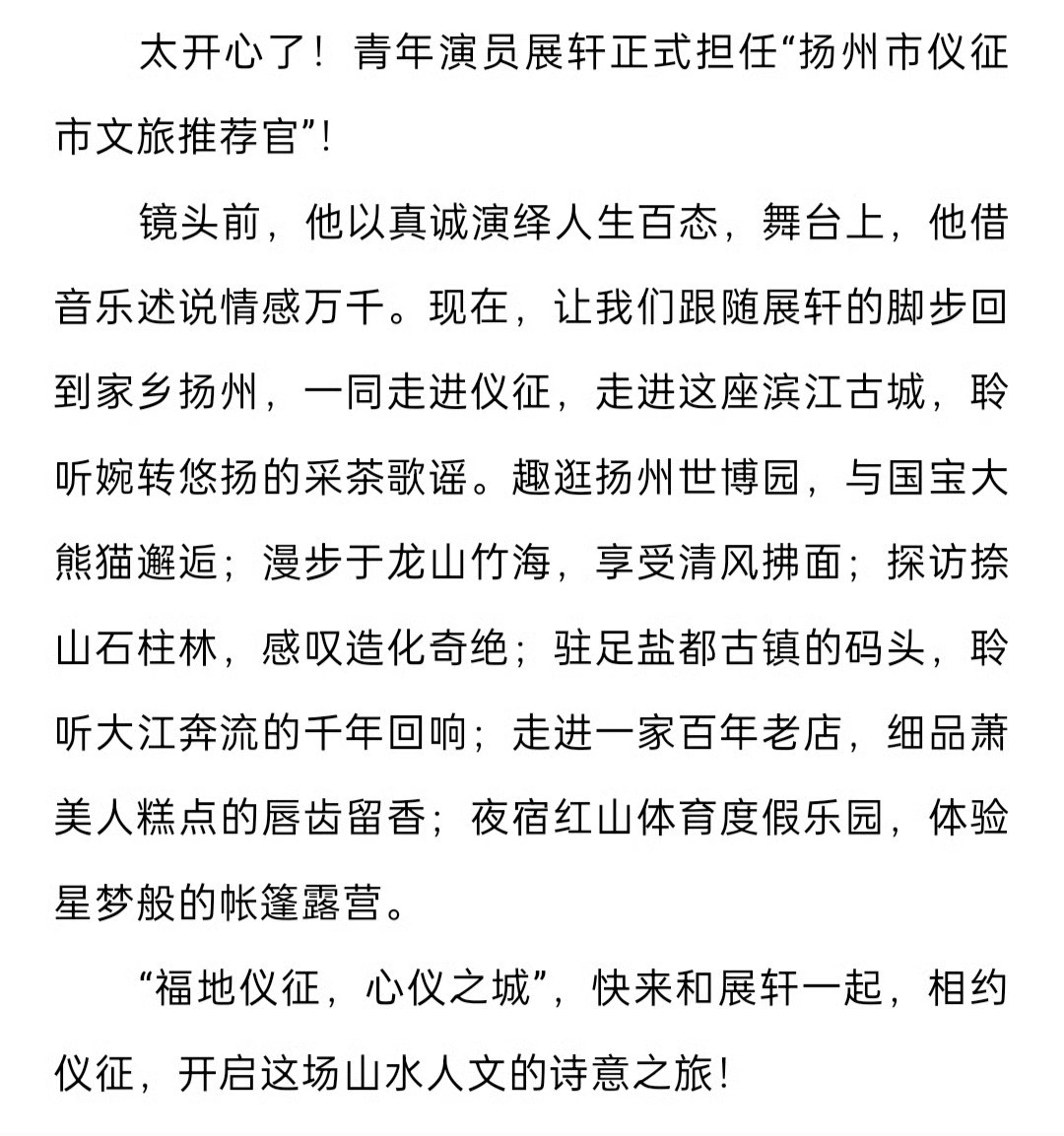 展轩官宣:扬州市仪征市文旅推荐官🎉
