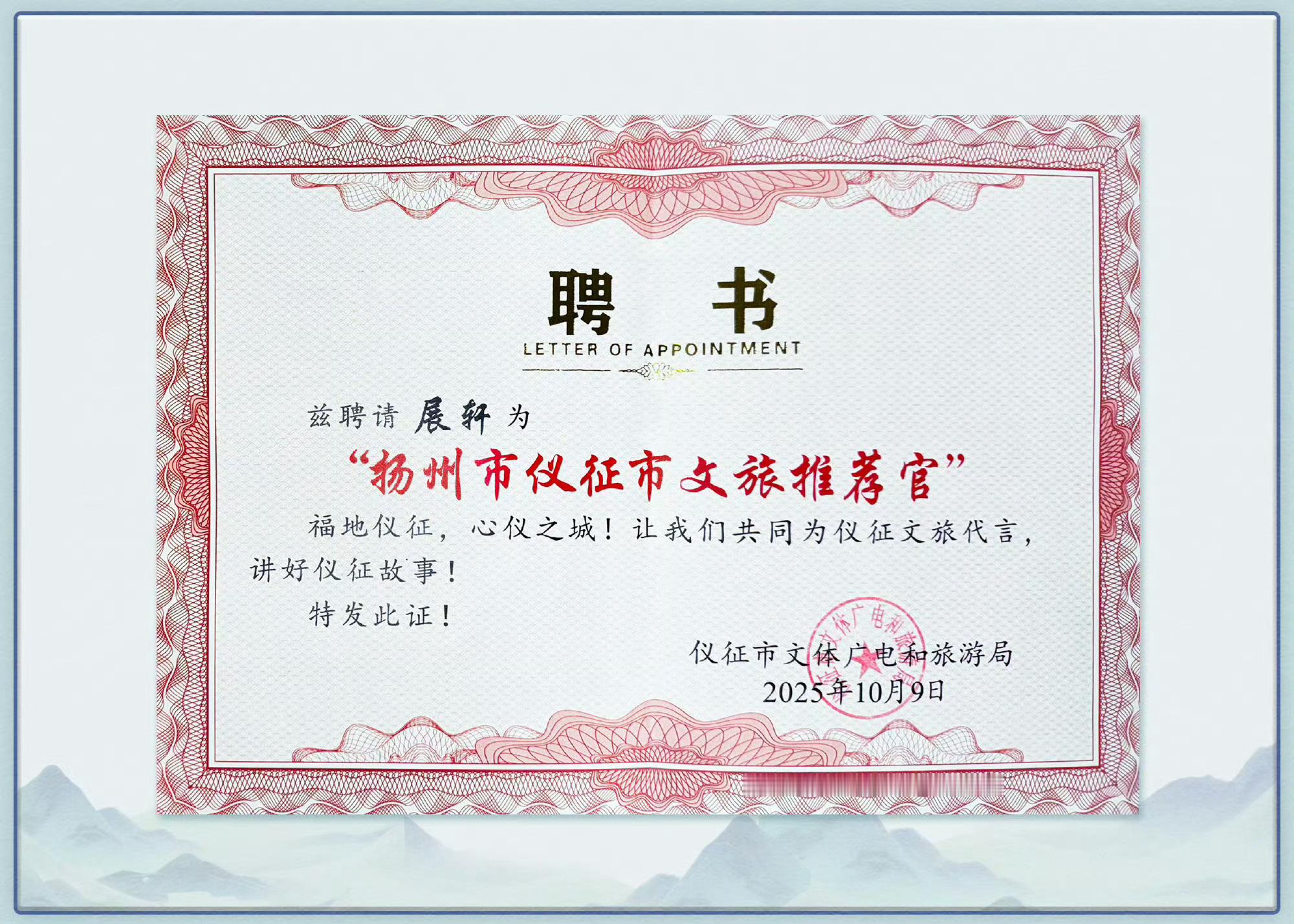 展轩官宣:扬州市仪征市文旅推荐官🎉解锁新身份,为家乡宣传!扬州市仪征市文旅推