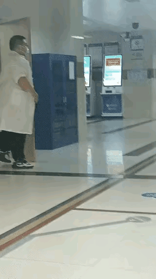 这个穿白大褂的男孩体格真好,走起路来也是非常的自信,而且步伐特别的沉稳,真有一种雄赳赳、气昂昂的架势,目测他的体重,最少也得250斤以上,看他穿的白大褂,也应该是大号的,但是想把这个扣子扣上,好像也是不可能的,因为他的身板太宽阔了,不知道这样的体格,适不适合从事这样的工作。