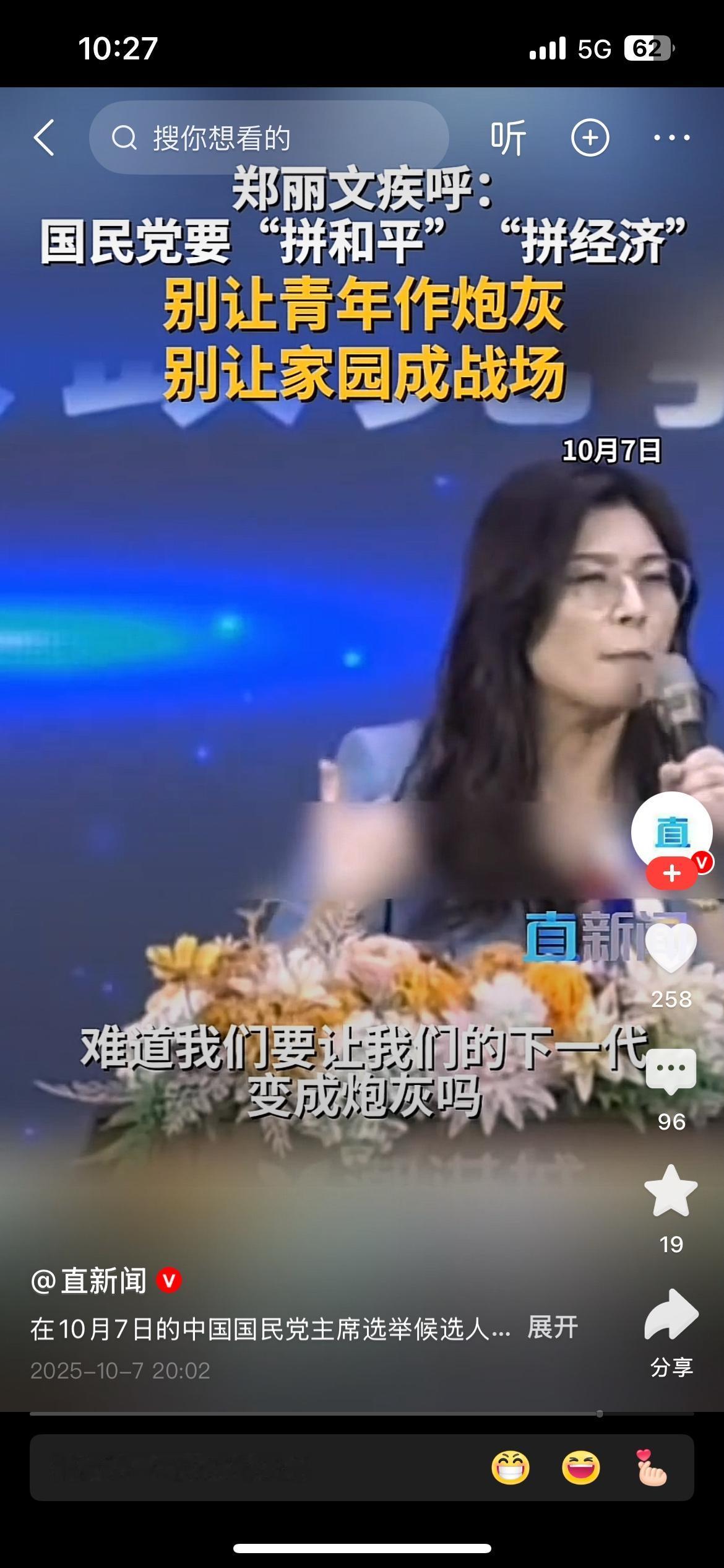 郑丽文在参与中国国民党主席选举的过程中,将“别让青年成炮灰” 作为其两岸论述的核心诉求之一,强调通过推动和平来避免战争,确保台湾年轻人的未来。 反对民进党政策,批评民进党“备战才能避战”的路线是将台湾青年推向战场,使台湾成为地缘政治棋子,外资却步,民生受损。 政策原则(“两不两要”) 不做麻烦制造者 坚决反对“台独”,认为“台独”是两岸和平最大障碍,必须下架民进党。 不当地缘政治棋子 反对过度依赖美国,拒当“第二个乌克兰”,避免台湾利益被掏空。 要做和平缔造者 主张在“九二共识”基础上深化两岸交流、和解与合作,实现共赢。 要“友陆和陆,一个中国” 呼吁台湾人自豪宣称“我是中国人”,在“一中”框架下为台湾争取发展空间。 反对高额防务预算 明确不支持将台湾防务支出提升至GDP的3%甚至5%,认为将严重排挤民生福利预算。 倡导两岸对话,表示若当选党主席,愿在有助于台湾人民安全与利益的前提下,与大陆进行对话。 郑丽文的主张与其个人经历和当前台海局势密切相关,同时也面临一些争议。 郑丽文早年曾加入民进党,后因认清“台独”的虚幻与危害而转投国民党。她多次提及2005年时任国民党主席连战的“破冰之旅”,将推动两岸和平视为从政的核心使命。其主张也意在回应台湾社会在民进党执政下对经济发展停滞和战争风险的普遍忧虑,将和平与民生福祉直接挂钩,以期获得更多民众共鸣。 郑丽文的论述在获得关注的同时,也引发了不少争议。一方面,党内深蓝阵营和大陆部分舆论认为其立场不够彻底,例如她提出“认同中国不等于接受统一”,以及表态若当选将拜访对华强硬的日本自民党总裁高市早苗,这些举动被批评为立场模糊,有“独台”嫌疑。另一方面,她的主张被质疑缺乏实现和平的具体路线图,更多停留在原则性呼吁层面。 郑丽文“别让青年成炮灰”的口号,直接击中了台湾社会对和平与安全的深切渴望。然而,如何将这一诉求转化为切实可行的政策,并应对来自党内外的不同声音,是其面临的主要挑战。