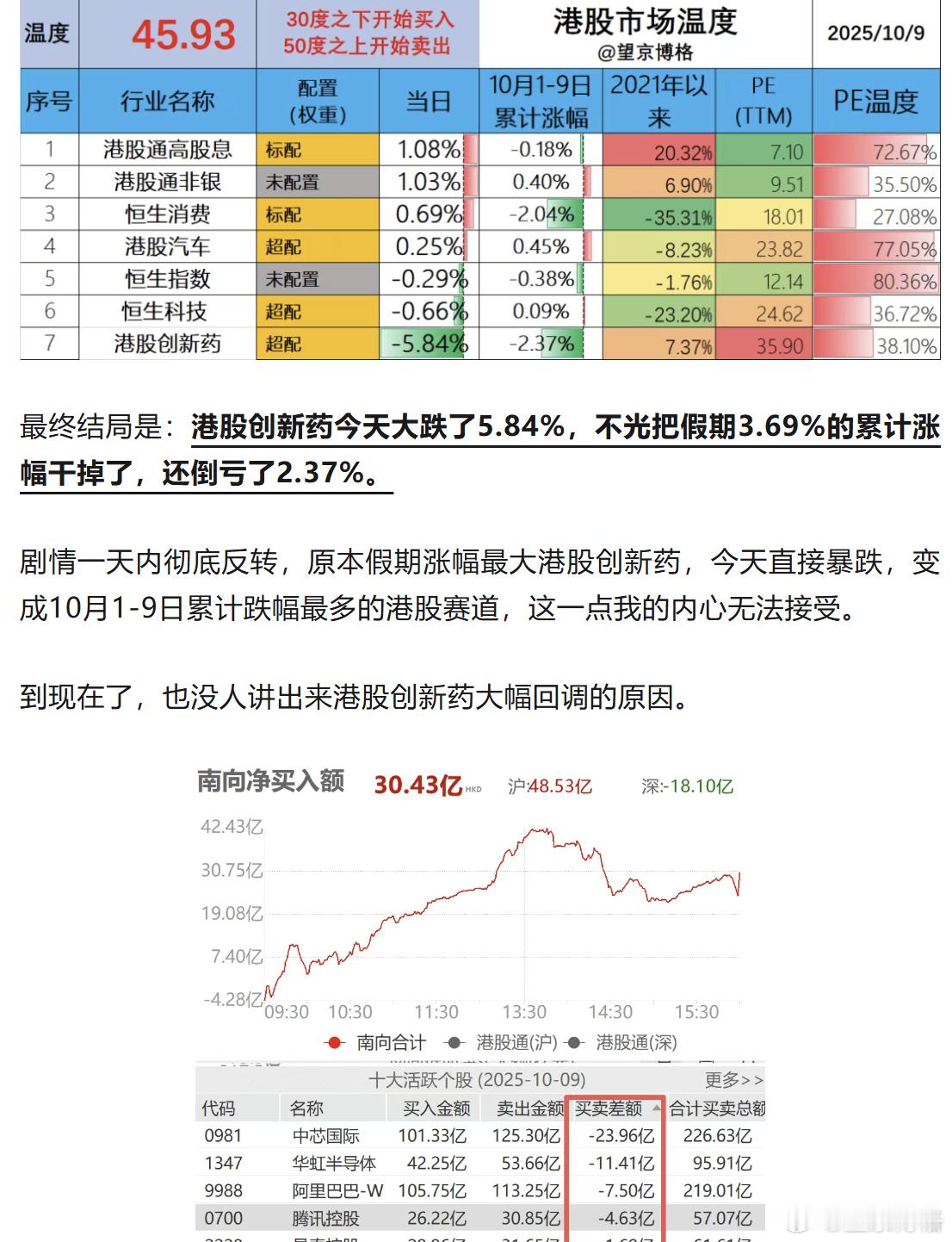 有人趁着假期拉高港股创新药,想要(假期后)南向资金接盘,结果南向没有接盘,唯有抛售了。不仅把假期涨的跌没有了,还把9月30日涨的也跌没有了。