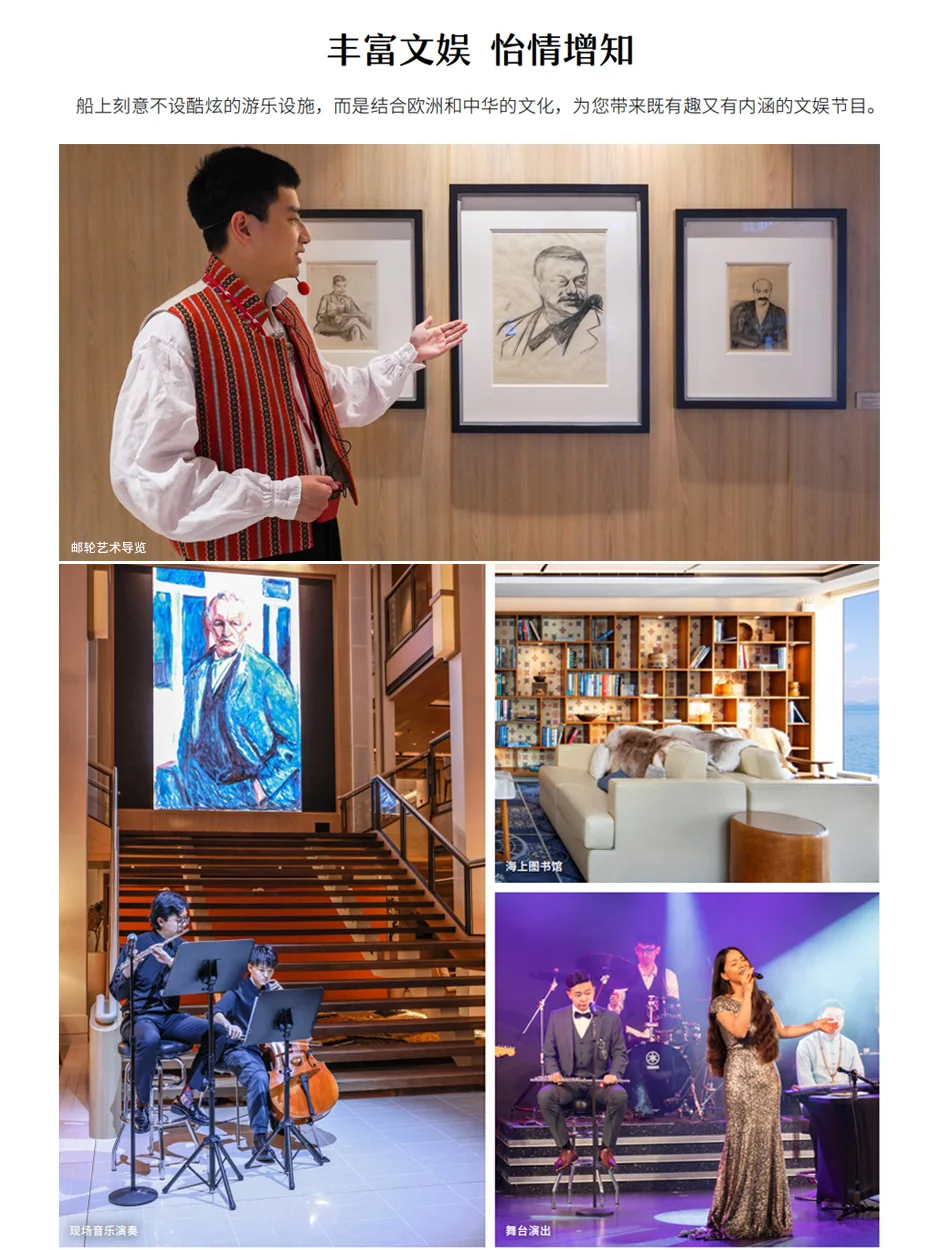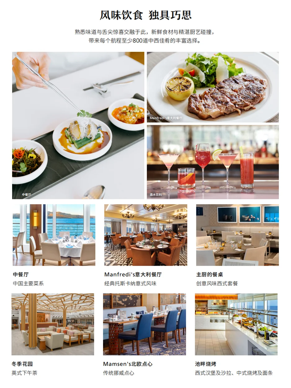 从舱房里的标识说明,到船上的餐饮搭配,再到下船后的导览讲解,全都是中文服务。