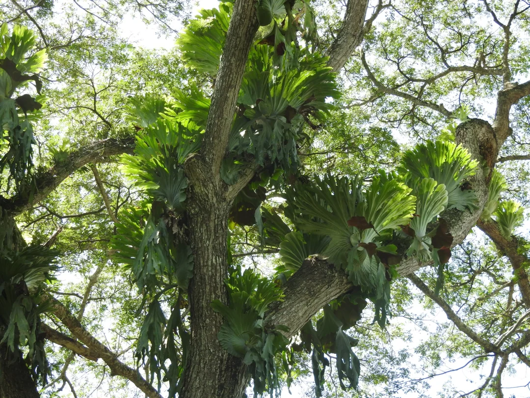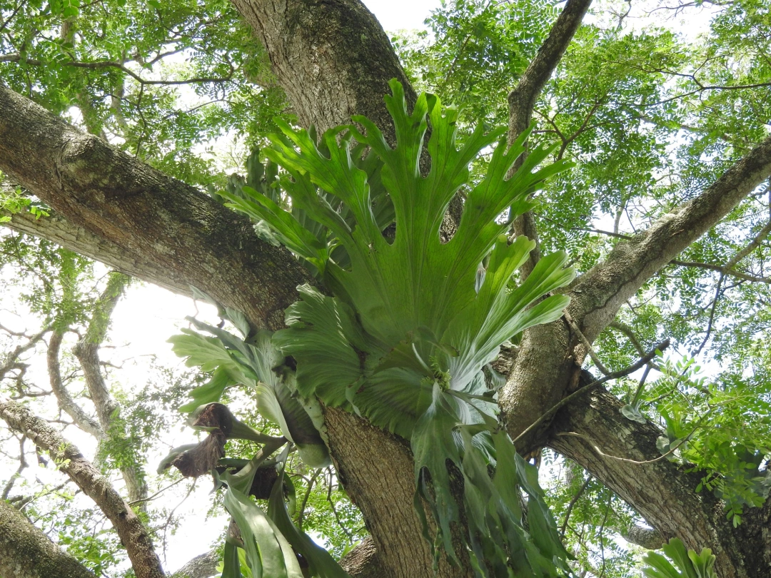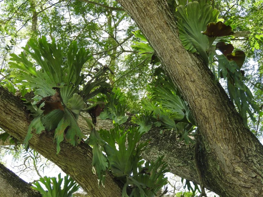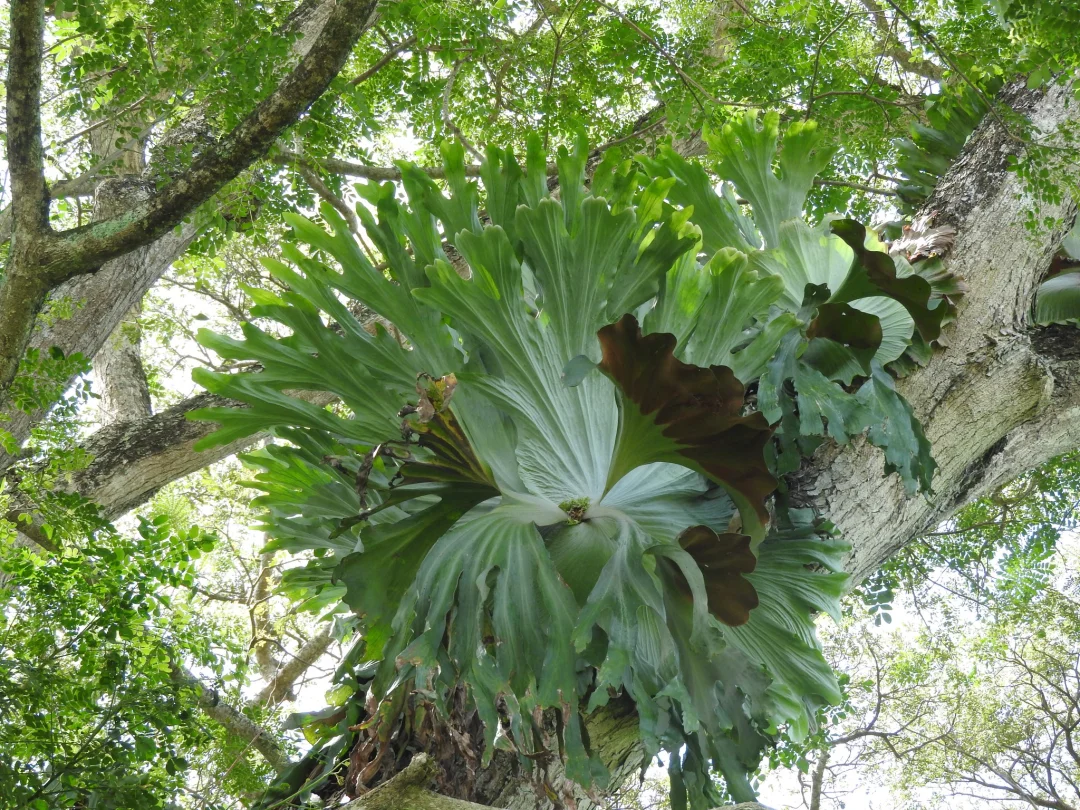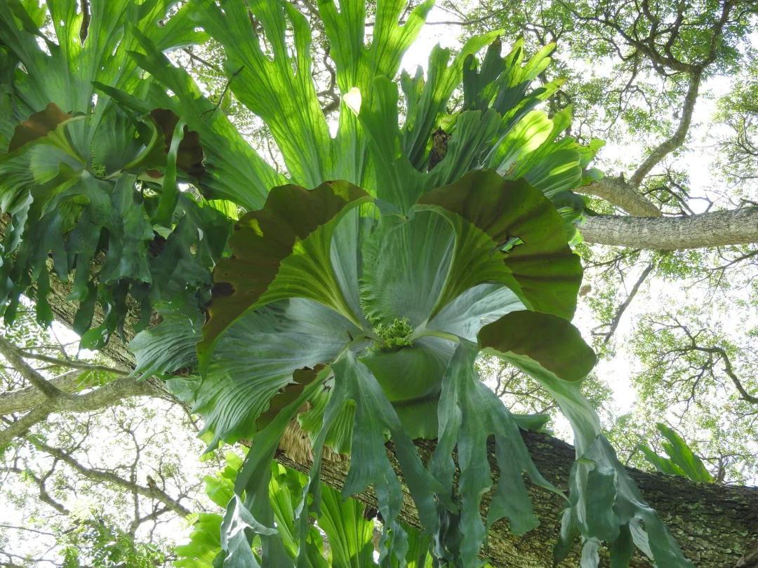 在巴布亚新几内亚的莫雷贝省某处,2公里的范围内有约1000株野生的女王鹿角蕨,这对于每一位喜欢鹿角蕨的朋友来说无疑是震撼和让人惊叹的。女王鹿角蕨毕竟是原生鹿角蕨中最大的,在高高的树上十分显眼,犹如给树着上了一个个皇冠,而芽点处,叶裂呈现的蕾丝状是辨认女王鹿角蕨的一大特征。