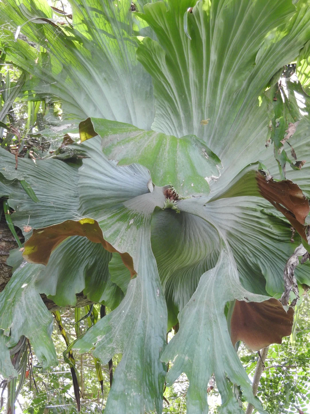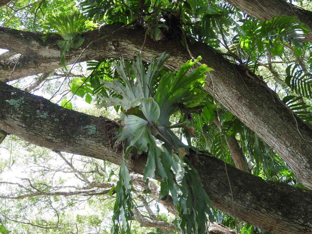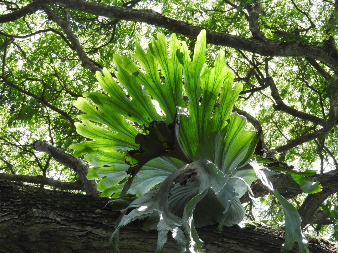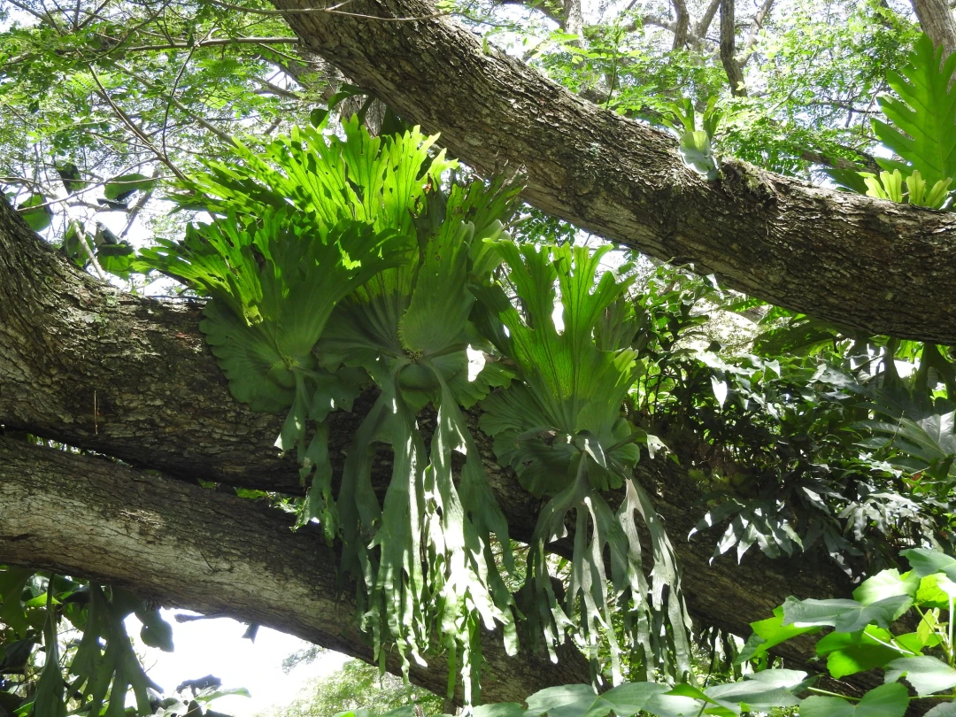 在巴布亚新几内亚的莫雷贝省某处,2公里的范围内有约1000株野生的女王鹿角蕨,这对于每一位喜欢鹿角蕨的朋友来说无疑是震撼和让人惊叹的。女王鹿角蕨毕竟是原生鹿角蕨中最大的,在高高的树上十分显眼,犹如给树着上了一个个皇冠,而芽点处,叶裂呈现的蕾丝状是辨认女王鹿角蕨的一大特征。