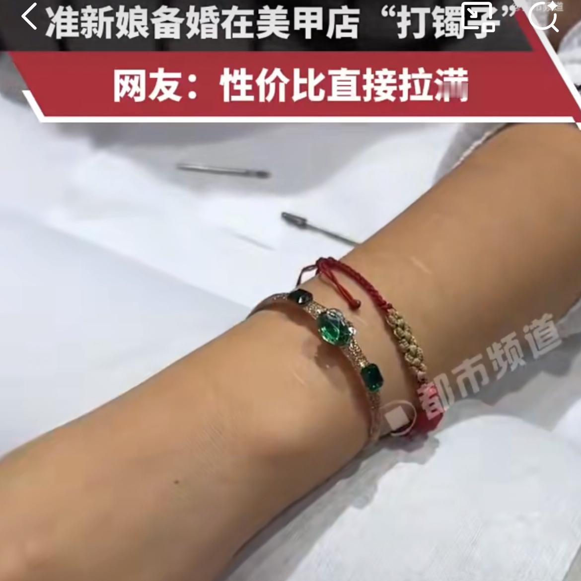 【新娘为省钱去美甲店“打金镯”!胶水+金粉=婚礼神器?】 山东一位准新娘为省钱