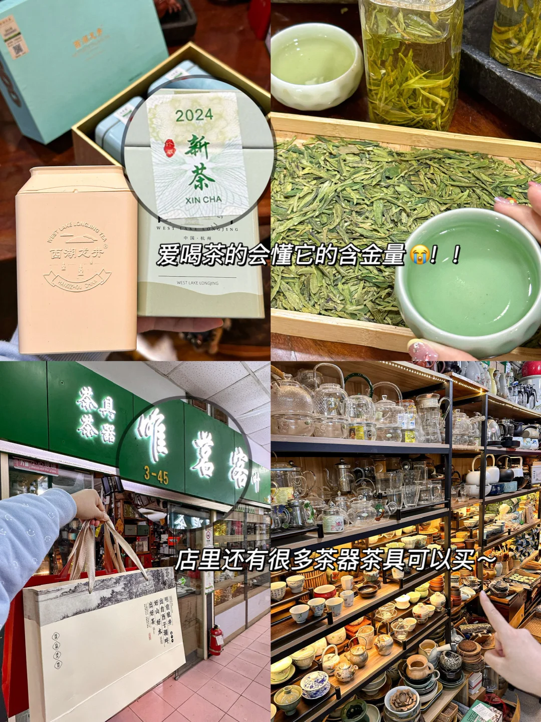 ✔️西湖龙井:第一次不知道买啥就选这个!!甘甜清新,回味清新悠长~老板说都是他们亲力亲为制作,怪不得入口不苦不涩 鲜润又爽口🍃