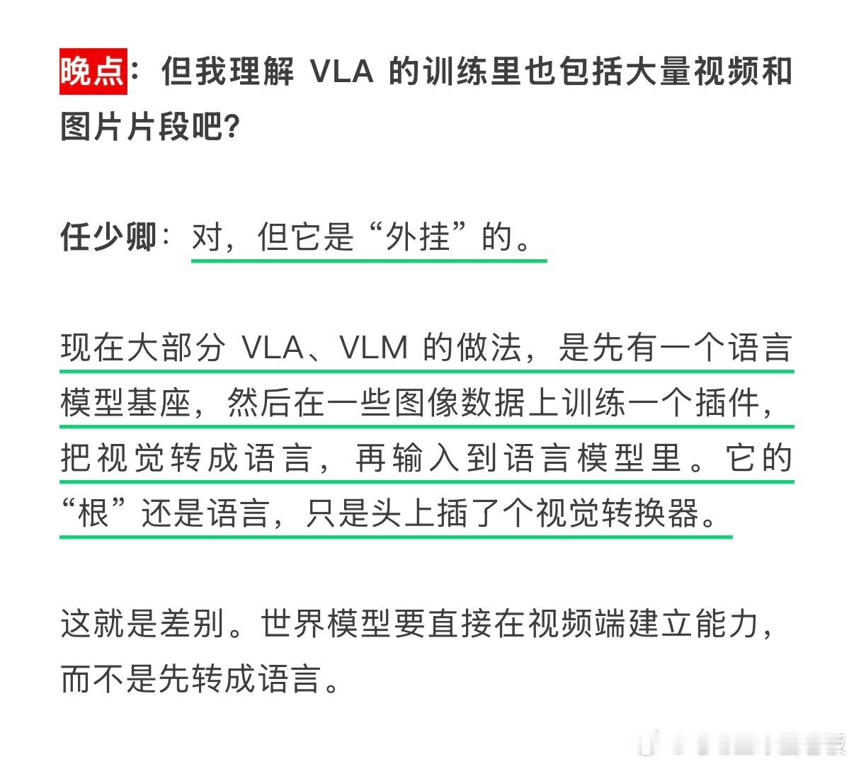 1、长时序的问题怎么解决,本质上是真AI和半AI的区分。任少卿接受访谈时聊得核心话题其实就是这个:譬如,当下 VLA 在解决长时序问题,解决时空认知问题上,还是用「外挂」方式来做;分段式或者「外挂」式(图二),能够在短期内,在部分体验上做好,但拉长来看,却也意味着上限被锁死,可挖掘的潜力不够。