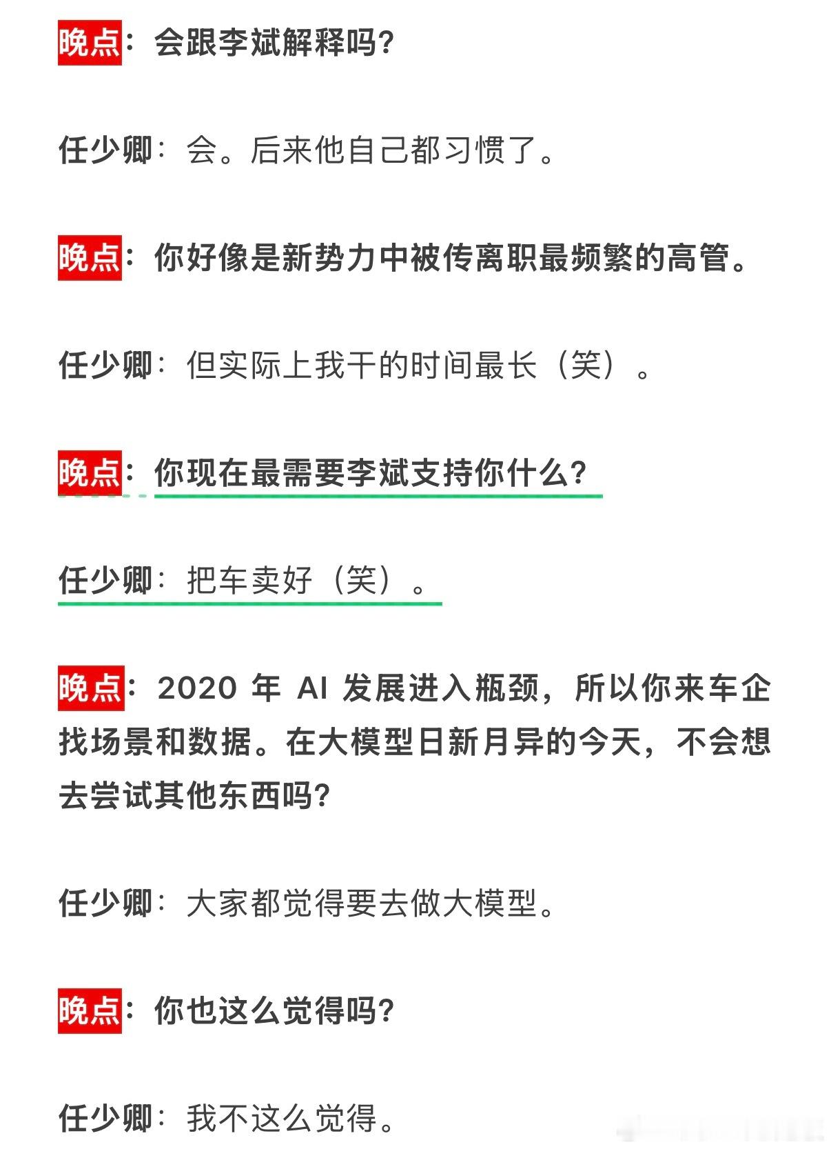 2、在小鹏的李被传离职或者不在担任一号位的时,任少卿在回应时「你好像是新势力中被传离职最频繁的高管」的那句回应——「但实际上我干的时间最长(笑)」(从20年8月至今),显得格外意味深长(如图3)。