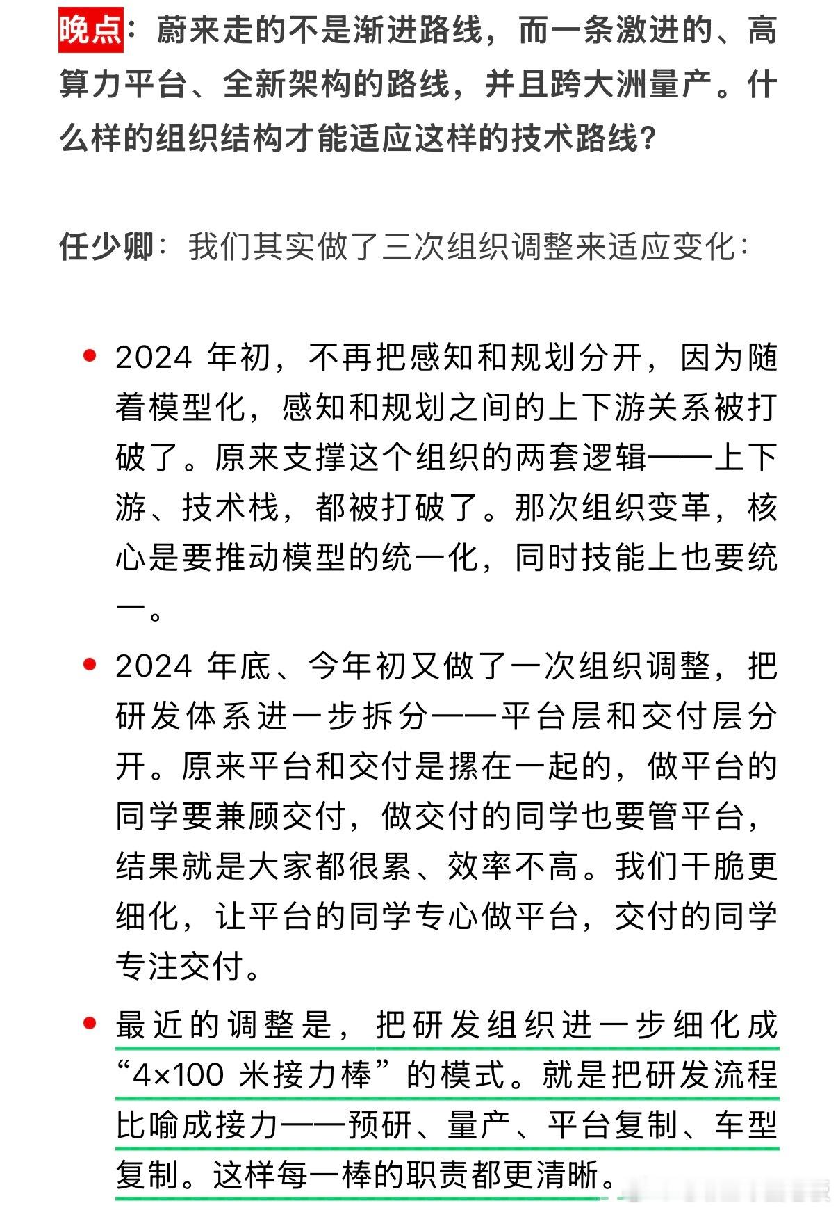 今天智能驾驶行业大地震的感觉,之前说了小鹏智驾一号位换人的消息,刚刚又看完了蔚来智驾一号位任少卿首次接受公开访谈的长文,感触蛮深的,一点点说。