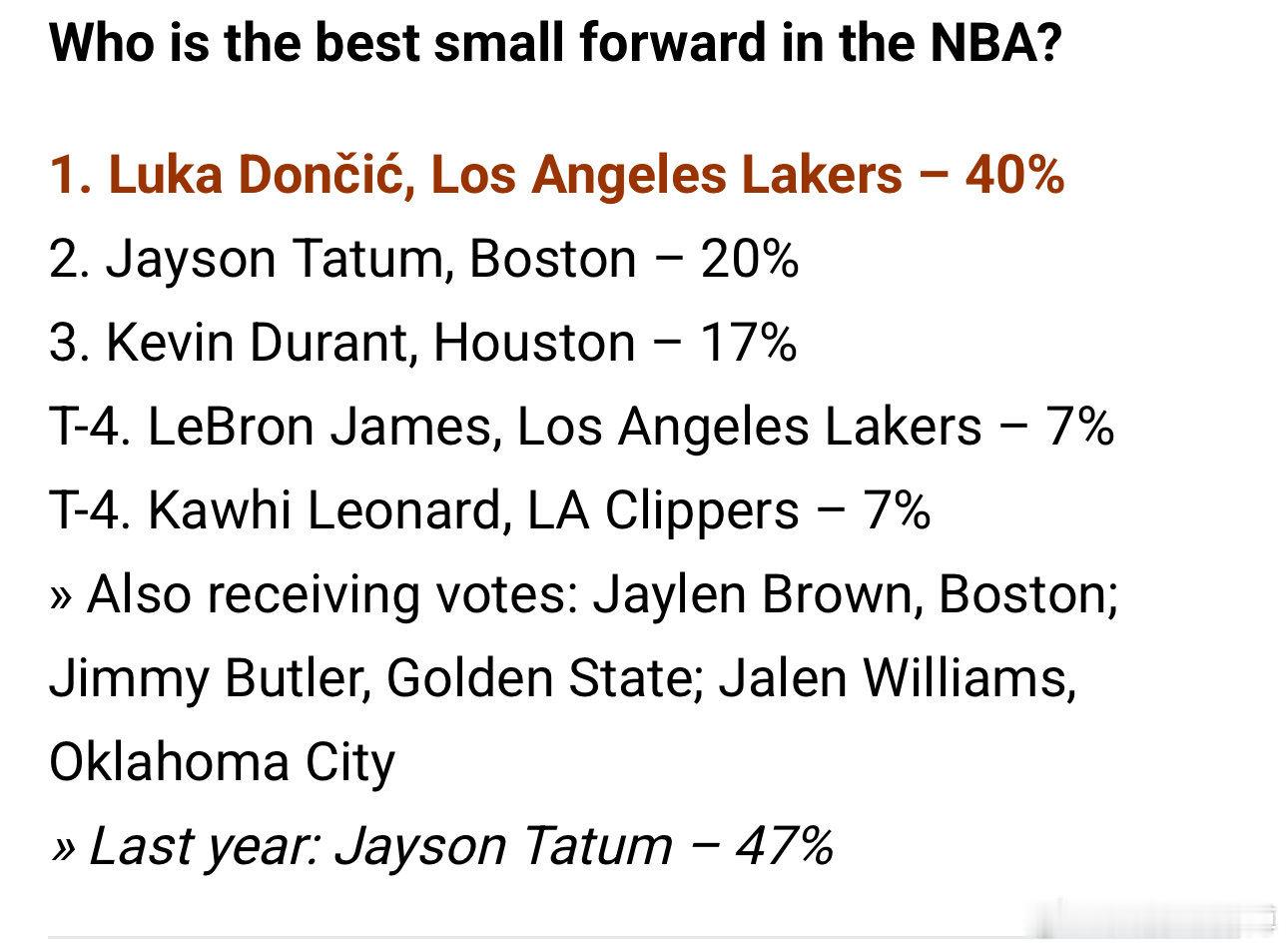 小前锋:东契奇(杜兰特第三🚀)