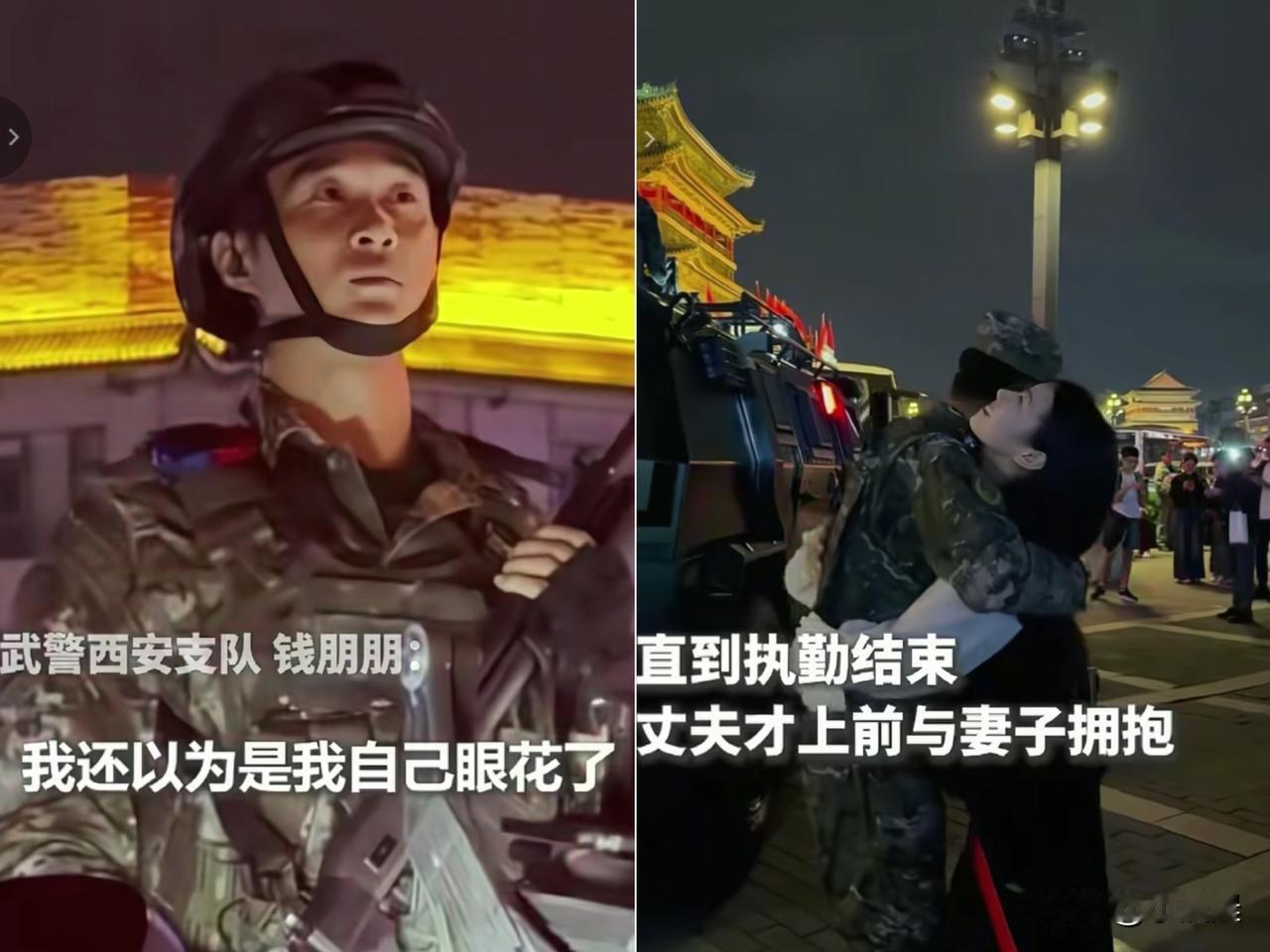 太甜了! 安徽到西安八百里奔赴, 换来的却是丈夫执勤时的一个扭头, 这画面