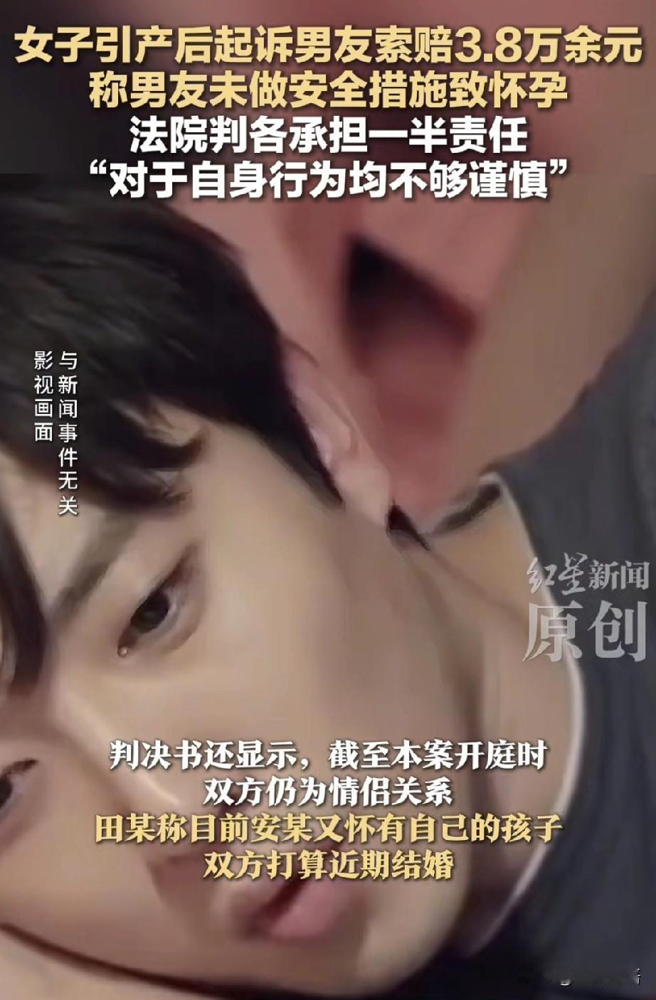 “有点奇葩!”一对情侣因未采取安全措施导致意外怀孕,男方不愿结婚,女方最终选择引产。事后,女方将男友告上法庭,索要医疗费、误工费、营养费等赔偿,法院判决后,他们却仍打算结婚。 10月9日,记者从中国裁判文书网获悉,北京市大兴区人民法院近日判决此案,酌定双方各自承担50%责任。 安某与田某曾是一对甜蜜情侣。然而,一场意外怀孕却让两人的关系陷入危机。交往期间,因田某未做安全措施,安某意外怀孕。 面对新生命的到来,田某表示还不想结婚,也没准备好承担父亲的责任。协商后,怀孕17周的安某在医院进行了引产手术,田某以男友身份在手术同意书上签了字。 引产手术后,安某将田某诉至法院。她称,田某的暴力行为给她带来极大身心创伤,并提交了一份《受案回执》,证明她曾报案被田某殴打。田某则辩称,引产是双方协商决定的,回执是引产后两人争执时报案所致。 田某还声称已支付9000元赔偿,但安某反驳说其中的8200元是田某偿还的欠款,并出示了欠条作为证据。田某则坚持欠款已部分偿还,双方各执一词。 法院审理认为,两人作为完全民事行为能力人,理应预见未采取安全措施可能导致的后果。双方自愿发生关系且行为不够谨慎,对怀孕引产结果均应承担责任。根据案情,法院酌定各承担50%责任。 经核算,安某的损失共计12467元,田某应承担6233.50元。法院认定田某此前转账的8200元视为赔偿,已超过应承担金额,故驳回了安某的诉讼请求。 令人意外的是,直至开庭时,两人仍保持着情侣关系。田某更在法庭上透露,安某再次怀上了他的孩子,两人打算近期结婚。从对簿公堂到计划结婚,这对情侣的关系走向令人唏嘘。