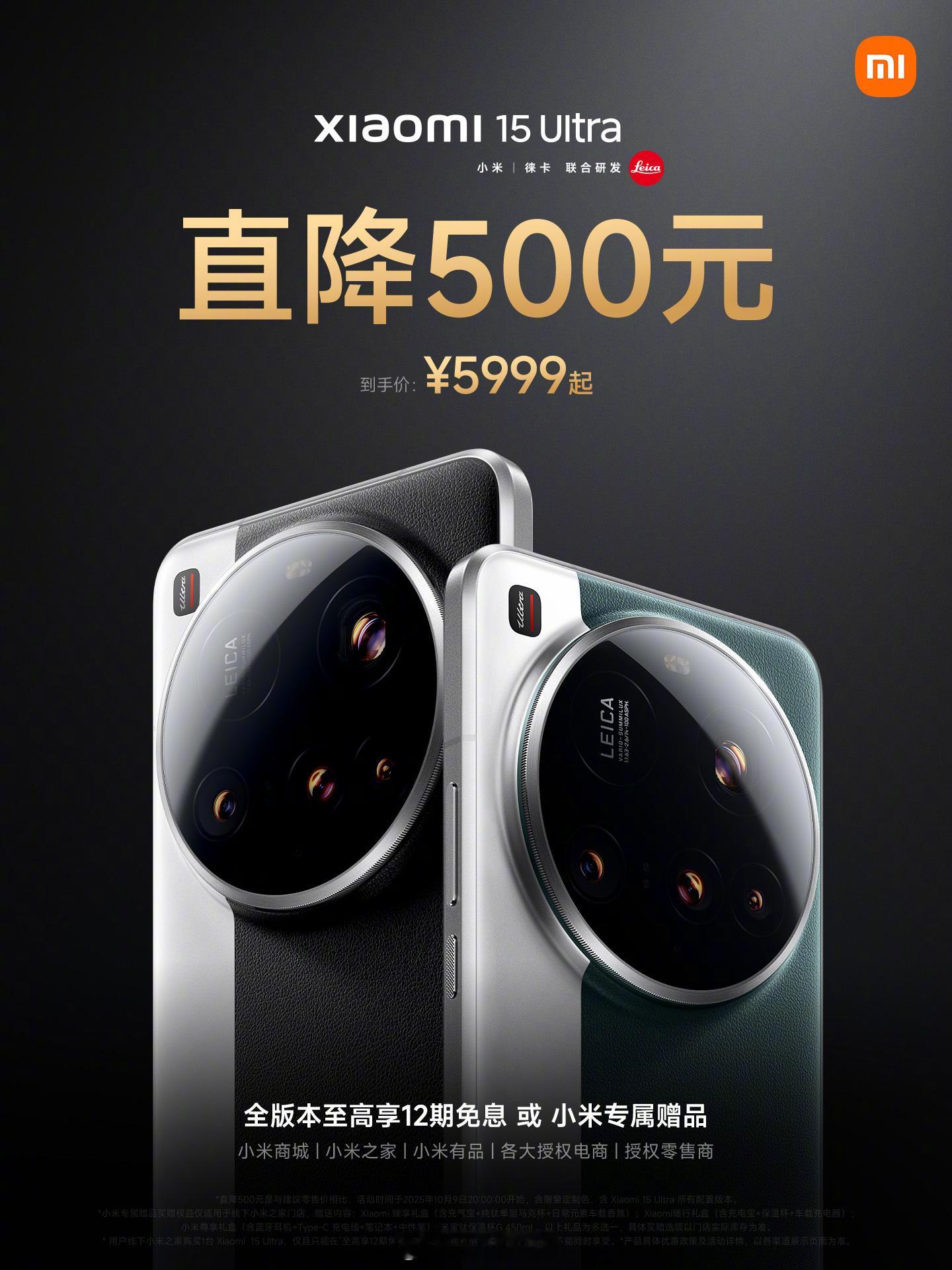 1、10月9日小米15 Ultra官宣降价,这一次幅度还挺大。直接降价500块,这样就成为5999元起,是可以享受到国补的;