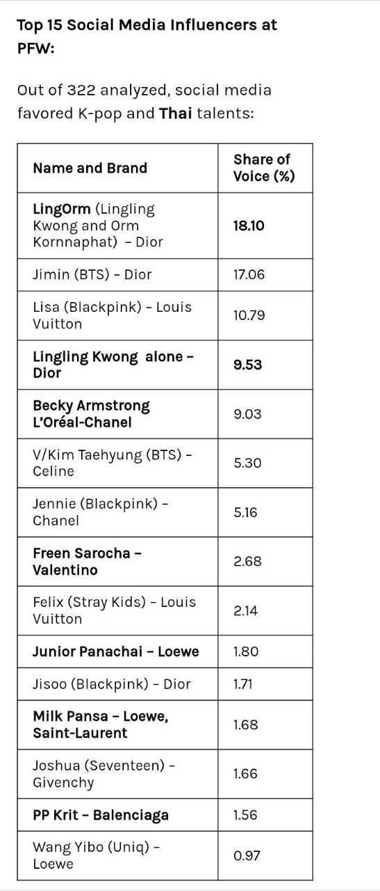 巴黎时装周上排名前15的社交媒体最具影响力人物