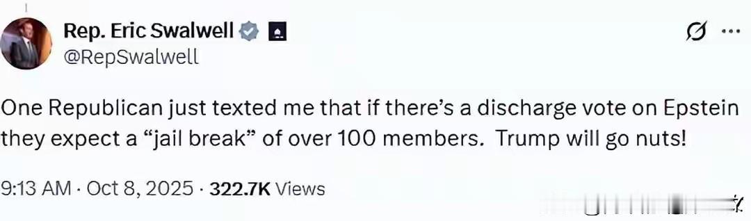 爱泼斯坦档案引爆国会,特朗普阵营分裂! 加州民主党众议员埃里克·斯沃韦尔周三在X平台的爆料,像是往沸腾的油锅里泼了瓢水。他直言超过百名共和党议员已做好准备,打算无视特朗普的意志,全力支持公开完整的爱泼斯坦档案。 更惊人的是,一位共和党议员私下发短信告诉他,一旦启动档案公开的“强制投票”,倒戈的共和党人会突破100名。“特朗普会疯掉的”,斯沃韦尔写下的这句话,精准戳中了当前美国政坛的紧绷神经。 这并非空穴来风的传言。上周末,共和党众议员托马斯·马西已经亮出了硬底气——他手里握有218份签名,这个数字足以绕开国会领导层的阻挠,强行发起公开档案的表决。 要知道,218票是众议院表决通过议题的“门槛线”,这意味着国会终于有机会撕开行政部门捂了许久的盖子,让公众看到爱泼斯坦案的完整面貌。 这场风暴的源头,早在2024年就已埋下。特朗普政府及司法部对爱泼斯坦档案的处理方式,从一开始就充满争议。今年7月,司法部与FBI联合抛出的声明更是火上浇油,一句“没有进一步披露的必要或理由”。 彻底推翻了前司法部长帕姆·邦迪此前“即将公布客户名单”的承诺。要知道,2024年竞选期间,特朗普曾把爱泼斯坦案当作攻击“深层政府”的利器,承诺当选后就公开涉案名单,如今的反转怎能不让人寒心? 保守派社群瞬间被点燃怒火,曾经的支持者直呼“被欺骗”,MAGA阵营的信任根基开始松动。如今,分裂的野火已从民间烧进国会。共和党内部早已不是铁板一块,一边是特朗普的核心盟友,还在咬牙发誓要捍卫总统立场。 另一边是清醒的温和派议员,他们看得明白,继续捂盖子就是在引火烧身,担心这种“政治自毁”行为会彻底葬送共和党声誉。这种对立不是简单的政策分歧,更像是一场关乎党派灵魂的“路线斗争”。 这场斗争的本质,从来不止是档案该不该公开,更是正义、真相与权力保护之间的激烈博弈。道德层面的撕裂首当其冲。许多中间派与年轻共和党议员看得透彻,爱泼斯坦案涉及的未成年人议题,是公众最不能容忍的底线。 继续包庇、掩盖案中可能牵扯的高层人士,无异于亲手摧毁公众对共和党的信任基础。年轻一代的共和党支持者成长于信息透明的互联网时代,对“恋童癖”等恶行零容忍,特朗普政府的淡化处理,与他们“终结旧政治积弊”的期待背道而驰,在党内凿开了代际鸿沟。 政治现实的反噬更是毫不留情,特朗普虽然在第二任期重掌行政权力,但在国会的控制力早已大不如前。爱泼斯坦案本身疑点重重,牢房监控关键1分钟缺失,法医报告与“自杀”结论矛盾。 《华尔街日报》还披露特朗普知晓自己的名字曾出现在案件资料里,这些都让“权贵掩盖”的猜测愈演愈烈。一旦档案公开,牵扯出共和党捐助者或政商盟友的名字,党内“自保派”与“忠诚派”的全面对立将不可避免。 就连众议院议长约翰逊这样的昔日盟友,都在7月15日公开表示“应公开所有文件,由民众判断”,与特朗普“停止讨论”的指令背道而驰。不难预见,若档案最终公开且揭露出更高层人物的牵连,共和党可能迎来“公开派系化”的结局。 一边会是以格林、马西为代表的激进派,即便证据摆在面前,或许还会继续为特朗普辩护,就像民粹意见领袖班农宣称的那样,将案件包装成“深层政府的阴谋”。 另一边则会是以中间派和新生代议员为核心的“净化派”,他们会坚决与旧权力划清界限,主张彻底清查以挽回公众信任。特朗普并非毫无动作,他正试图用“以攻代守”的策略脱困。 一会儿公布马丁·路德·金遇刺档案,一会儿翻出“通俄门”旧账指责奥巴马,想用这些话题转移公众注意力;一会儿又推动法院解密少量大陪审团证词,想靠“蒙混过关”平息声浪。 甚至起诉媒体索赔100亿美元,用“受害者叙事”激发传统保守派的同情。可这些招数收效甚微,民调显示62%的共和党支持者仍认为“政府隐瞒了客户名单”,信任一旦破碎,再想拼凑可没那么容易。 更棘手的是,这场内耗还可能影响选举大局。2026年中期选举已近在眼前,若共和党因该案失去众议院多数席位,特朗普的立法议程将处处受限。马斯克更是借势成立“美国党”,把“曝光爱泼斯坦客户名单”当作核心纲领,摆明了要分流MAGA阵营的支持者,给共和党添堵。 说到底,爱泼斯坦档案就像一面镜子,照出了美国政坛权力与真相的博弈。《纽约时报》说该案对美国人仍是“黑匣子”,可真正的危机或许不是名单里有谁,而是公众看清“正义承诺可能只是政客争票工具”的瞬间。 共和党如今的分裂,本质上是道德底线与权力利益的碰撞,是代际价值观与旧政治生态的冲突。这场风暴最终会走向何方?档案能否公开?共和党能否弥合裂痕?答案或许就在议员们的选票里,在公众对真相的期待里。
