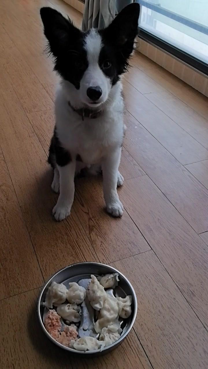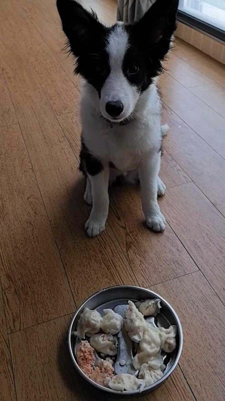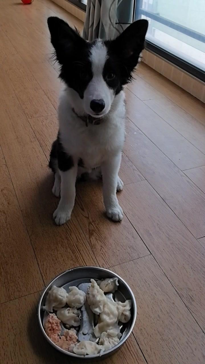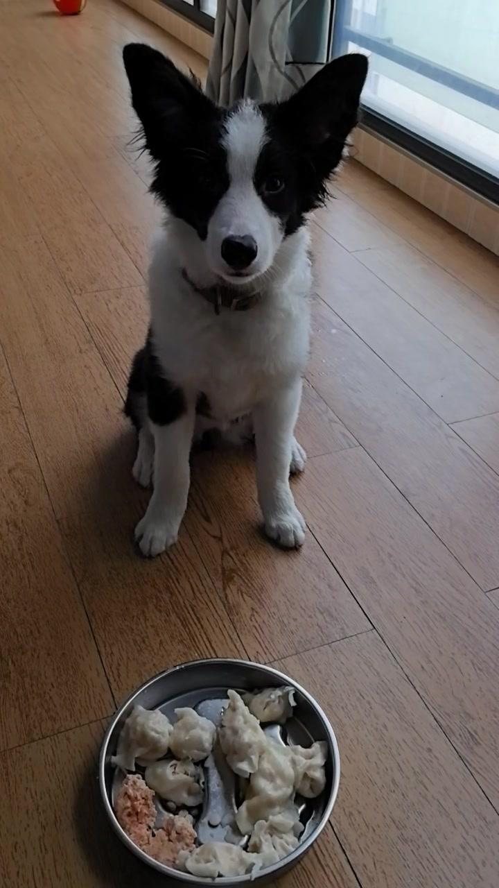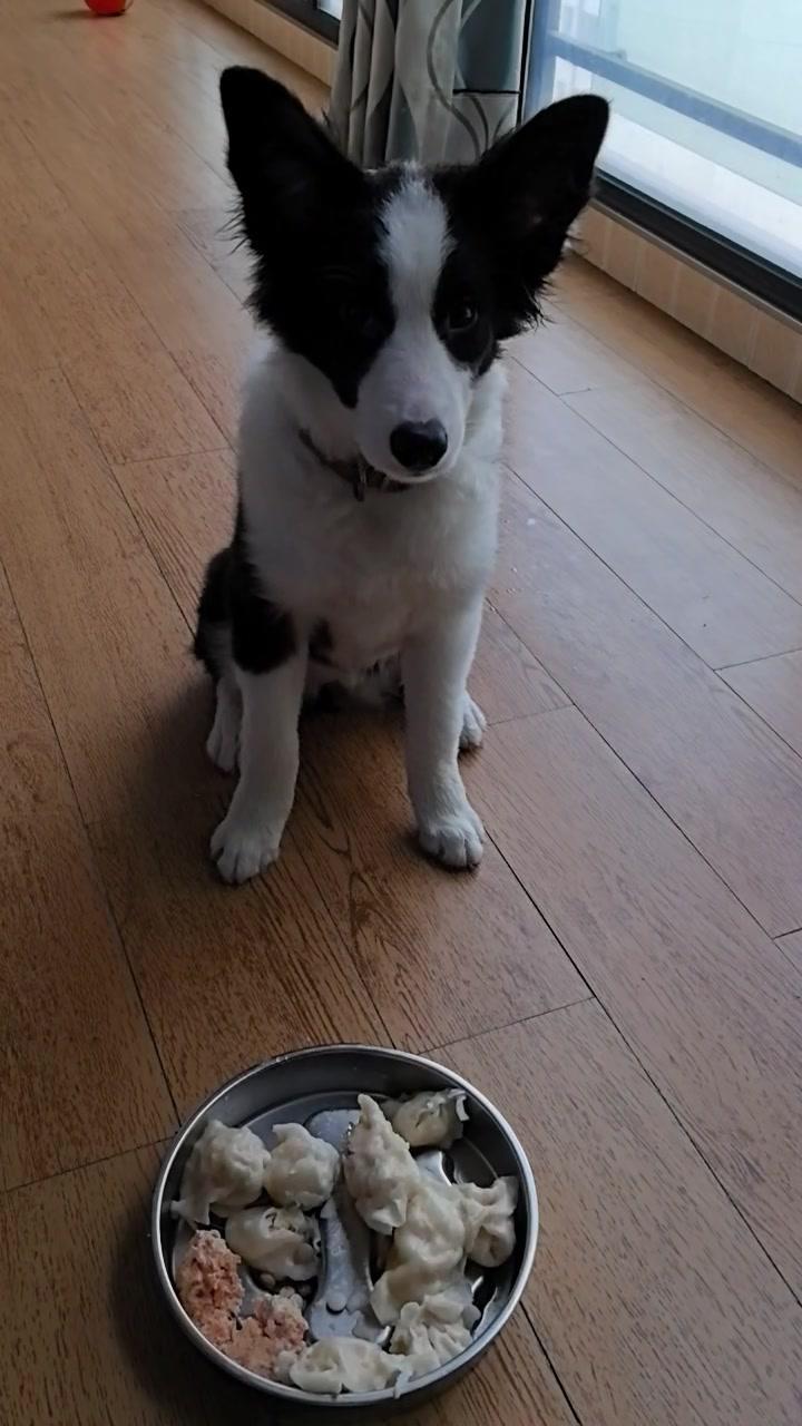 给边牧途途包了鸡肉胡萝卜馅饺子,看它吃得狼吞虎咽,一口一个,真是又可爱又让人着急