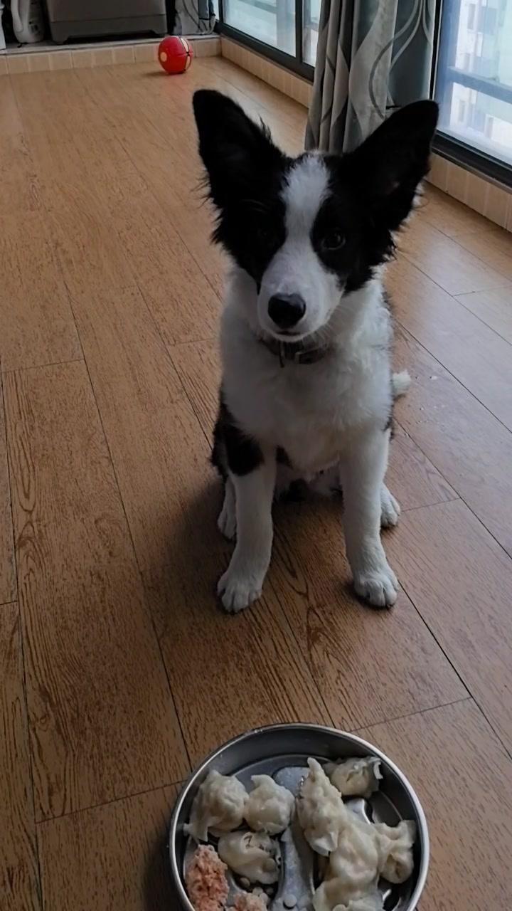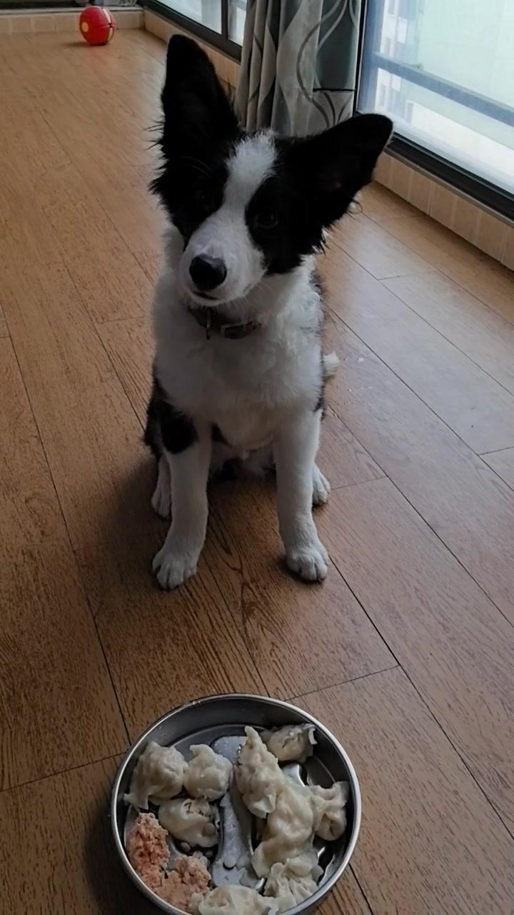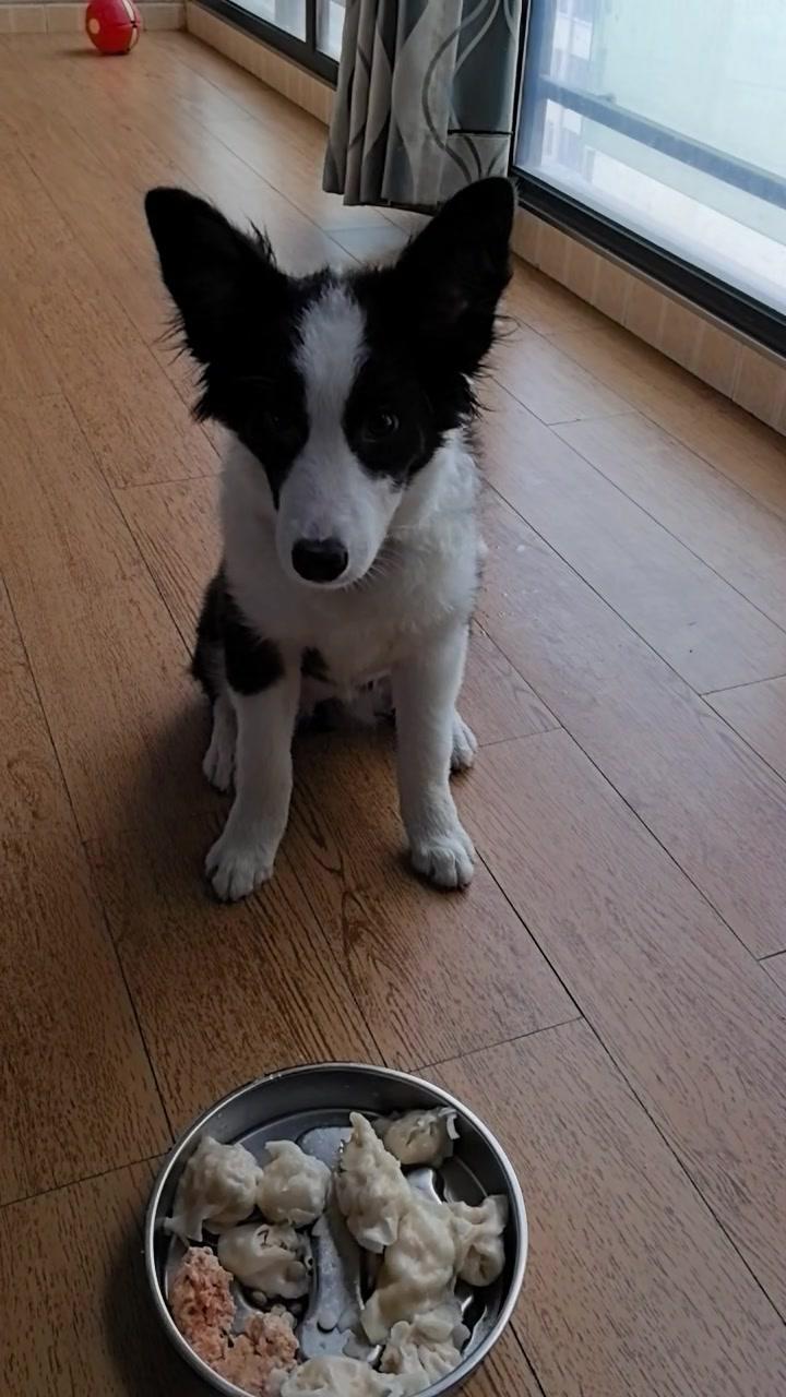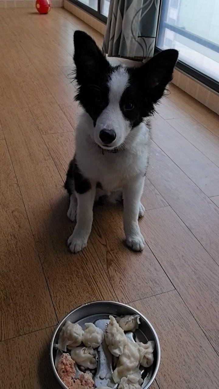 给边牧途途包了鸡肉胡萝卜馅饺子,看它吃得狼吞虎咽,一口一个,真是又可爱又让人着急