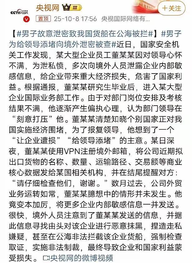 对这种人,真的不能再宽容了,必须有一个杀一个,如果不杀,关几年就放了,没有任何震慑作用,就不断会有人为了一己私利而前赴后继。 间谍的本质就是叛徒,他们出卖的是国家和人民的利益,危害的是国家的安全和人民的福祉。其罪行之恶劣,后果之严重,远甚于那些杀人越货的刑事犯罪分子。 不要认为这些间谍手上没有沾上别人的鲜血就可以不判死刑,他们的行为是杀人于无形。他们出卖国家的最高机密,将国家安全置于高度危险之中,如果极端情况发生,死的就不是一两个人,而是成千上万的无辜人民。 现在世界上的敌对势力已经瞄准了中国的核心科技机密,这些间谍出卖的正是这些情报。比如我们的六代机、电磁弹射、空间站、超高速导弹、激光武器、稀土材料的提炼、锂电池等先进技术,都是敌对势力想方设法要弄到手的目标。而这些先进技术一旦泄密,其所带来的危害无法估量。 所以对于间谍,尤其是出卖涉及军事、材料、芯片、先进制造技术等方面情报的间谍,只要出卖一次,就判死刑立即执行,而不是要看他们造成的后果。 不杀几个,这种势头是难以遏制的。对这些背叛国家和人民重大利益的人,他们已经没有理由再活在这个世界上,必须坚决杀掉。