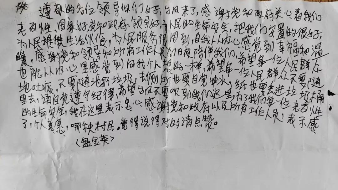 这封手写的感谢信彻底火了!在猛硐瑶族乡猛硐村小学转移安置点,那张皱巴巴的纸上,字迹或许不算工整,却一笔一划写透了真挚——“感谢党和政府把我们安置得很好,为人民服务很周到”。 谁能看见,这背后是防汛工作人员熬红的双眼?是他们守着一盏盏不眠的灯,端出一碗碗热腾腾的饭菜,用轻声安抚把“不安”换成了“安稳”。没有打印体的规整,只有手写的温度,村民盘宝荣那句“说得对的请点赞”,像一颗小石子,在网络里漾开层层感动的涟漪。 这不是一封普通的信,是被守护的人,对默默付出者最深情的告白;是“人民至上”承诺下,最接地气的回响。原来真正的热榜,从不是流量堆砌,而是这种你护我平安、我报你以真诚的双向奔赴,在烟火人间里,活成了最动人的模样。