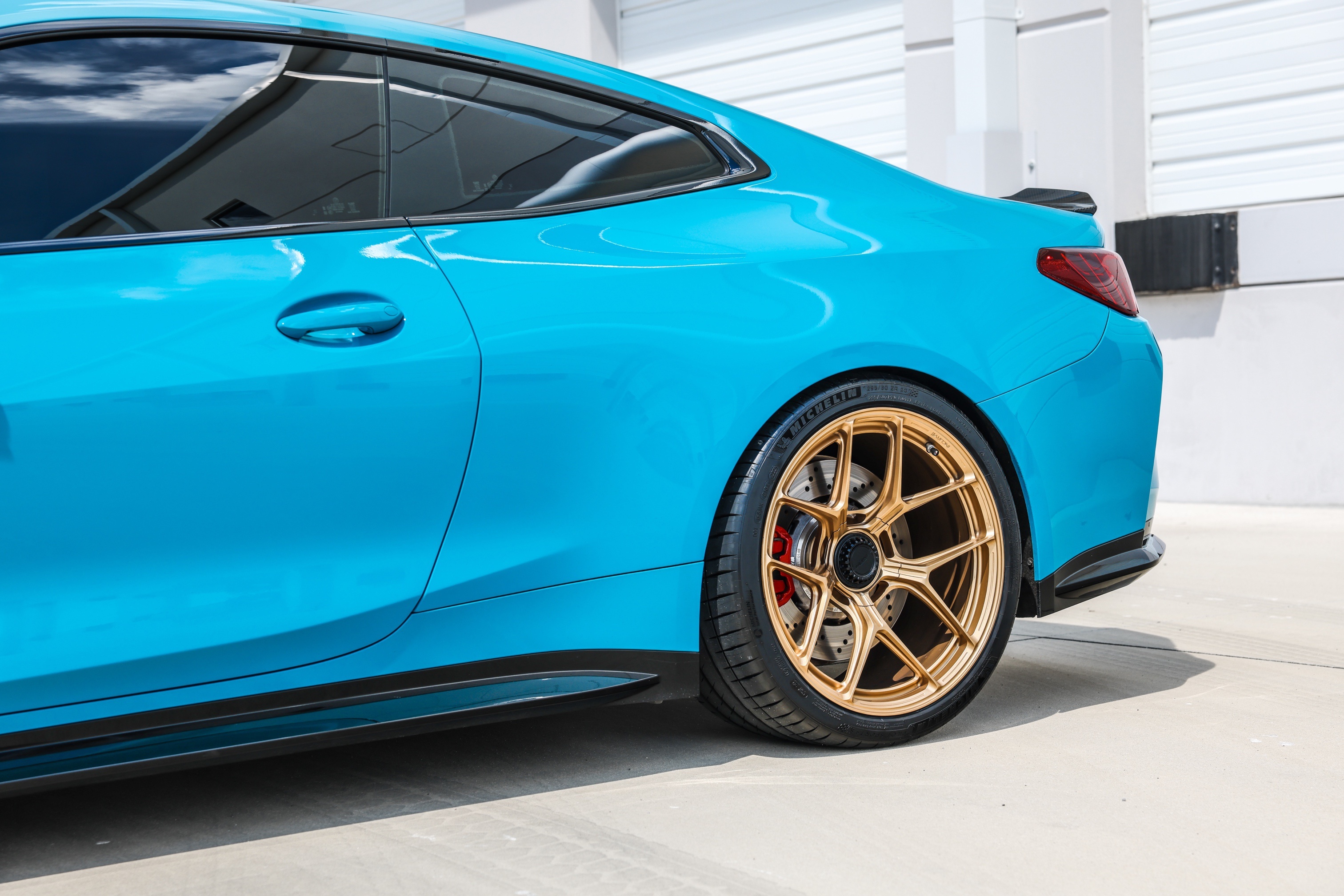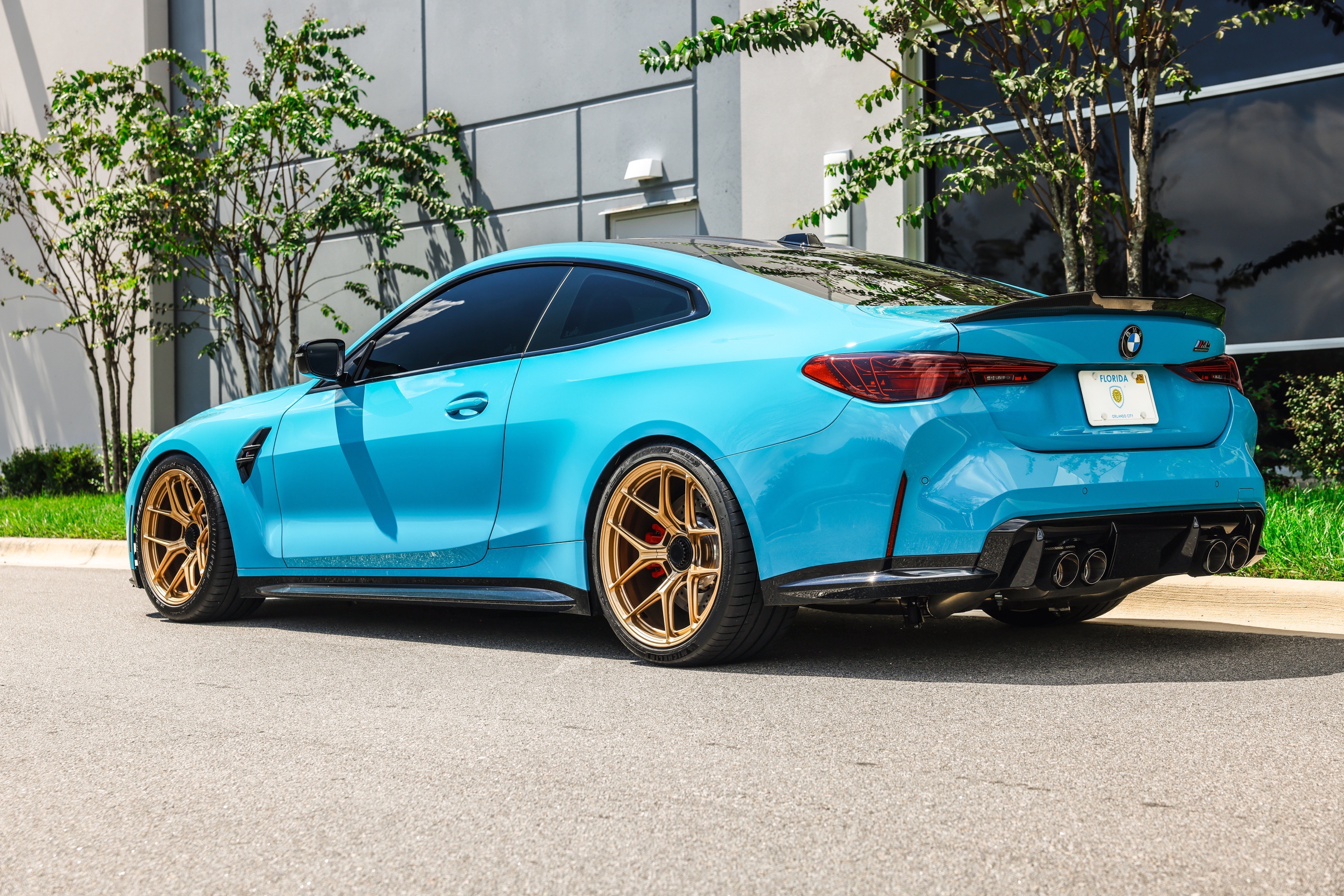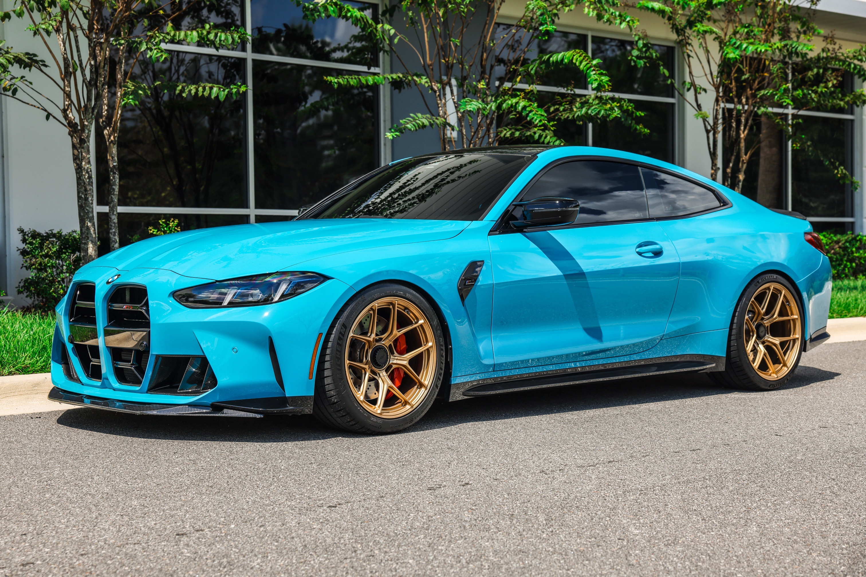 迈阿密蓝宝马M4,再升级一套金色轮毂!