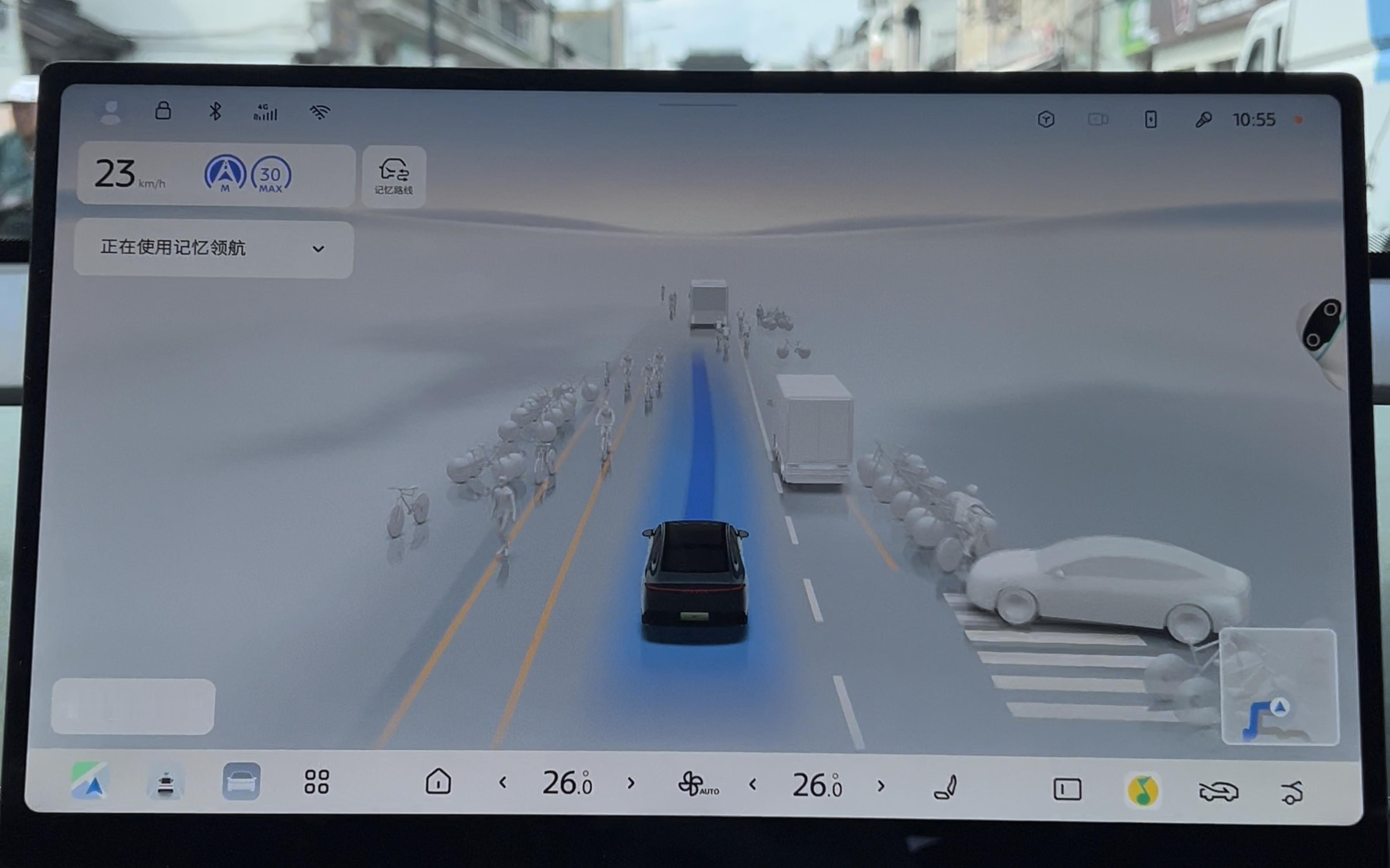 城市记忆领航辅助驾驶功能支持学习10条线路,单条路线最长支持100km。能够准确识别信号灯,支持待转区,调头灯识别,可提前减速幻听,规划路径更你人,转向过程更丝滑。挡开启城市记忆领航辅助后,可通过控制方向盘或加速踏板进行人机共驾,驾驶员停止介入后系统可迅速接管;