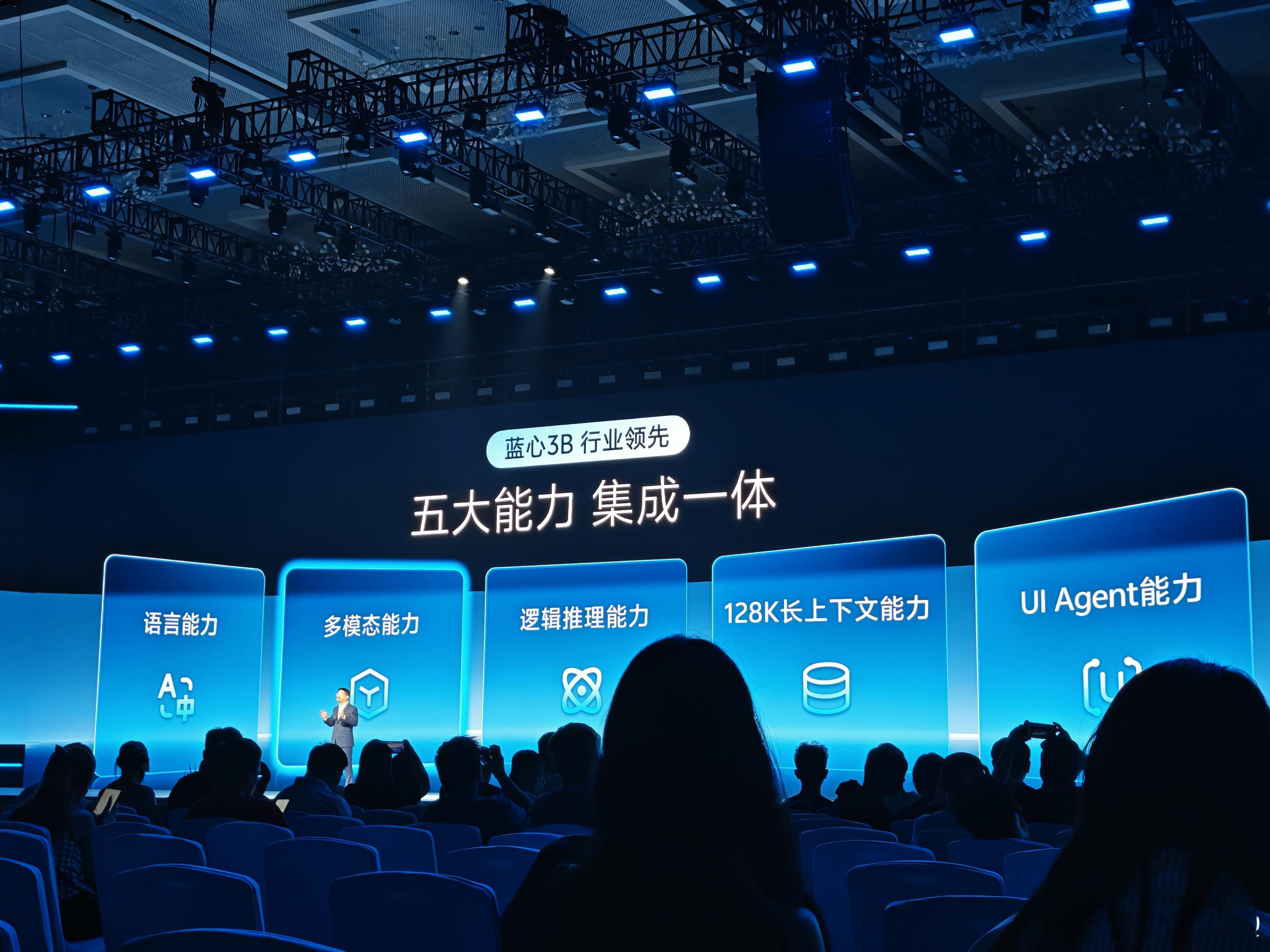 还有一个重磅消息,蓝心3B端侧大模型成为行业内首个在3B量级,将五大核心能力集成于一体的“One Model”