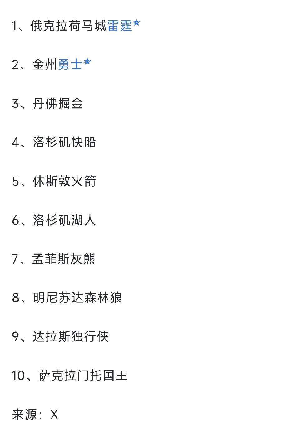 雷霆,掘金,森林狼,火箭,湖人,马刺,快船,小牛,勇士,灰熊