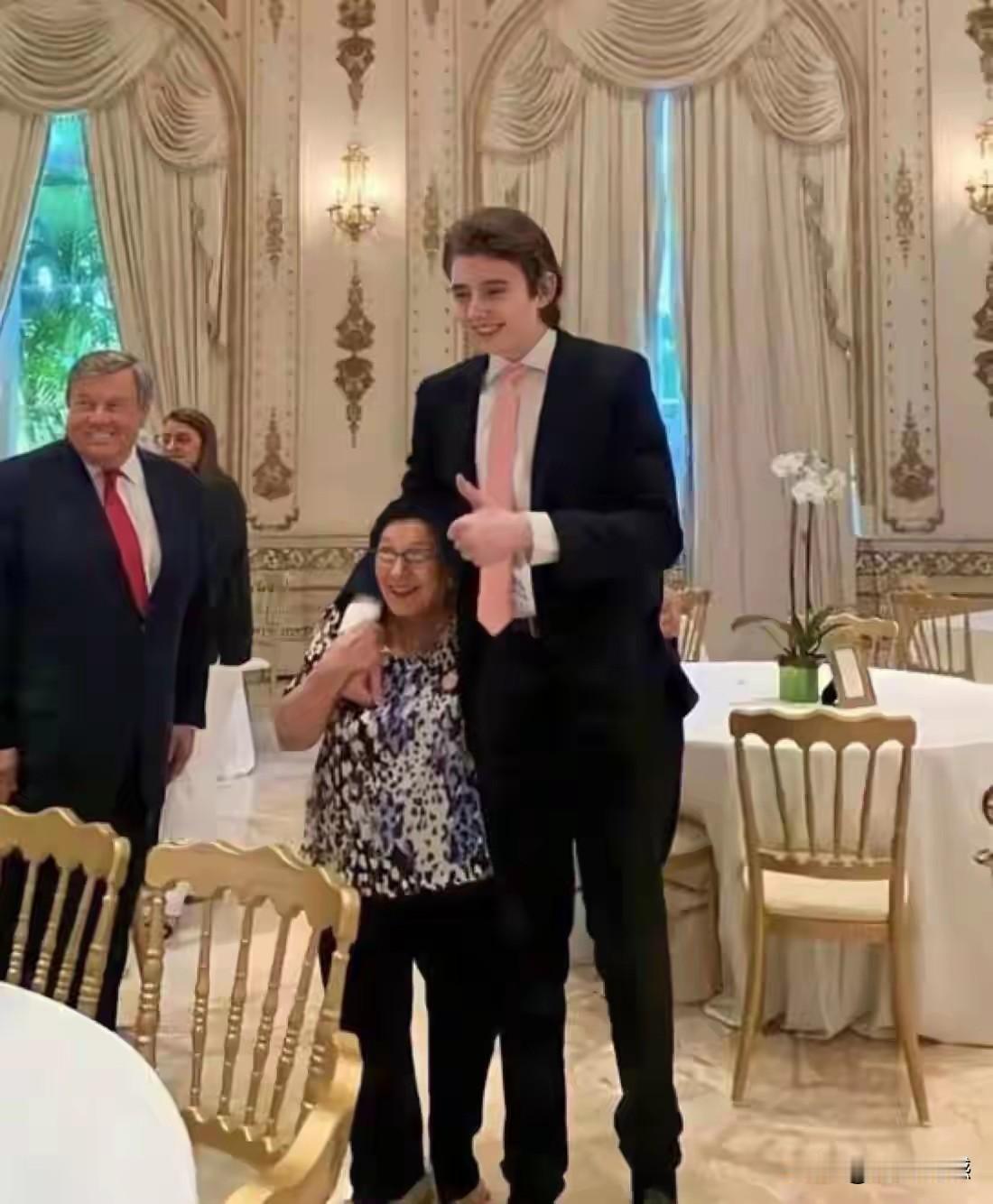 特朗普的小儿子,这身材的确是够高的了,站在他前面的这个老妇人,跟他一对比,简直是差一大截子,发现一个有趣的现象,感觉无论是外国人,还是我们中国人,现在年轻的身高都是越来越高,几乎都超过了父辈和祖辈的身高,这说明营养都好了,过去人生活条件艰苦,因为我现在人生活好,他们在小时候该吃的东西没有吃上,因此身材普遍都没有现在人长得高?