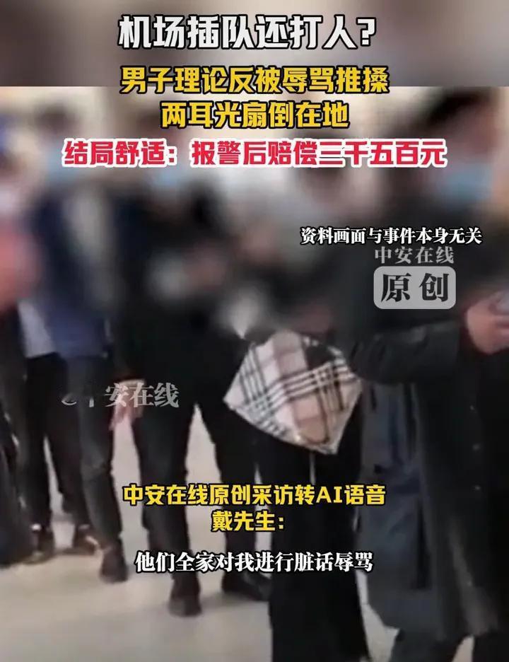 南京机场一乘客因阻止插队被扇耳光,当事人称对方已道歉,并补偿3500元 10