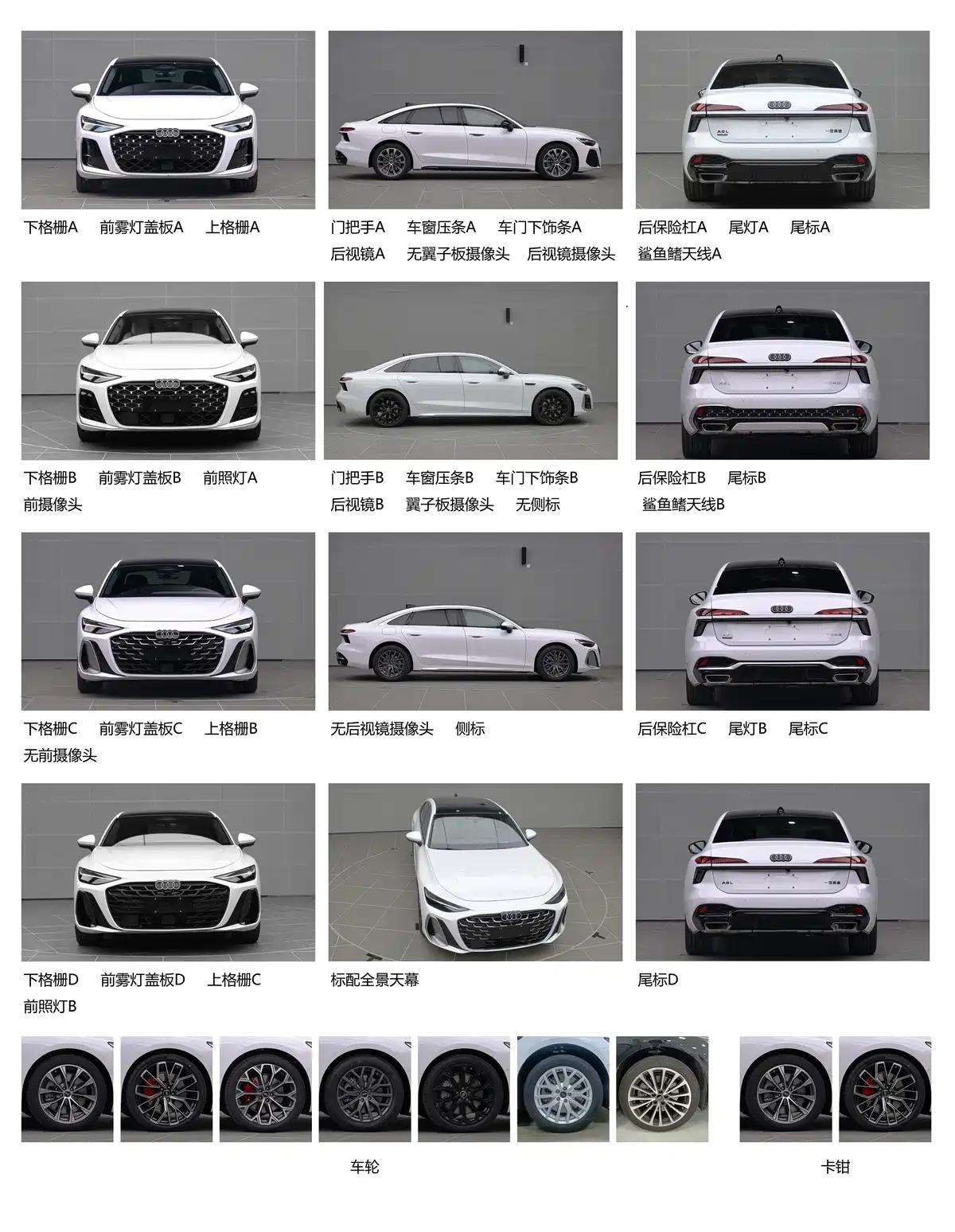 全新一代奥迪A6L申报图了,新车应该在明年4月的北京车展上市。 新车的一大看点是在两侧导流槽内部均加入激光雷达模块,并在前翼子板处加入侧置后摄像头,预计采用华为乾崑智驾技术。 从申报图来看,新车造型更加运动,大尺寸六边形前格栅,内部辅以蜂窝状元素进行点缀,搭配狭长的大灯组以及两侧造型夸张的导流槽,车尾的元素也非常丰富。看起来更加酷炫动感。 车身尺寸为5142/1874(1887)/1450(1464)mm,轴距为3066mm,相比现款长宽分别增加了92mm和1mm,车高减少了11mm,轴距增加了42mm。动力依旧为型号为DXG的2.0T发动机,最大功率为200千瓦,匹配7速湿式双离合变速箱。【来自懂车帝车友圈】