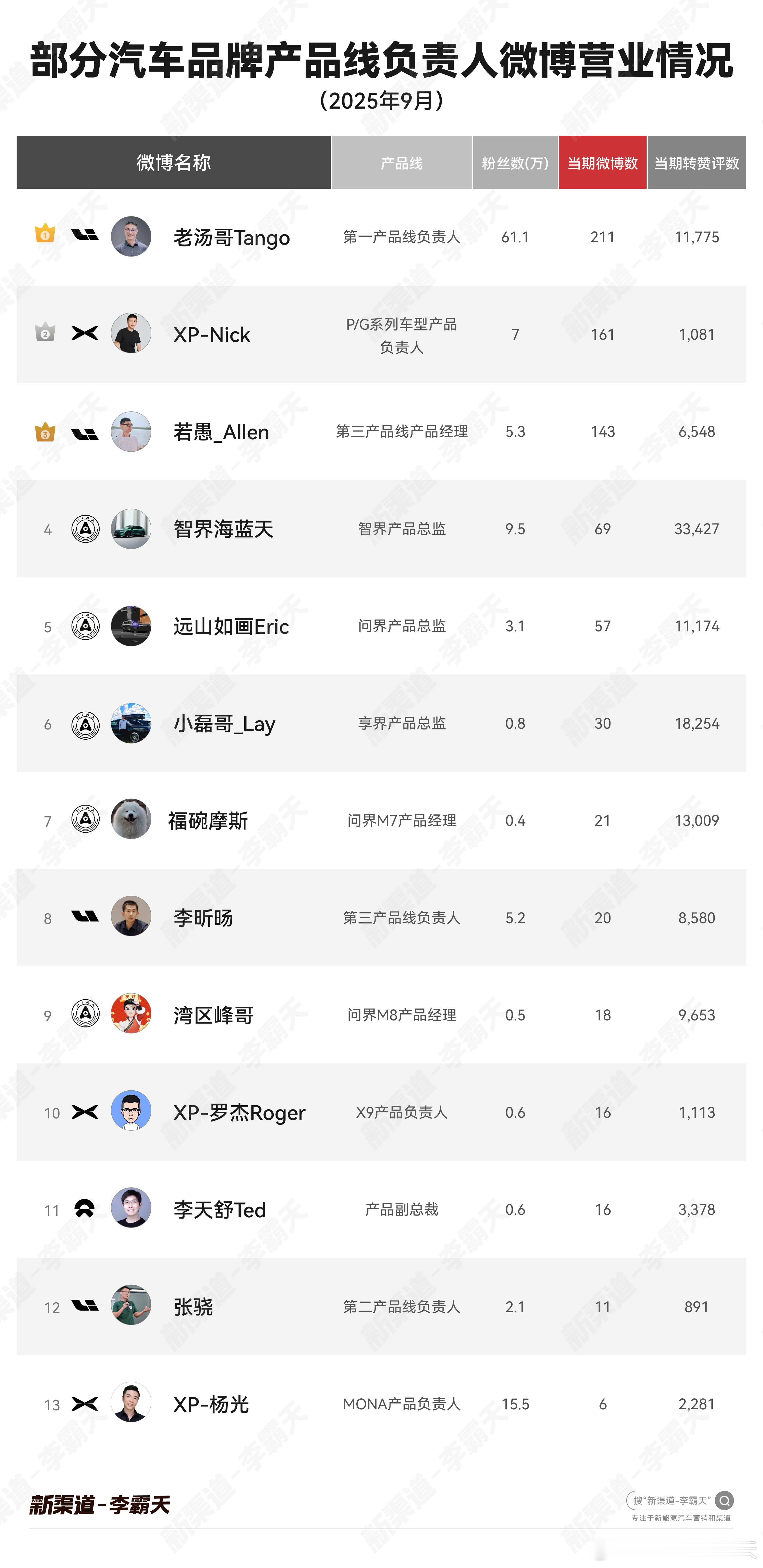 「部分汽车品牌产品线负责人微博营业情况」第三期