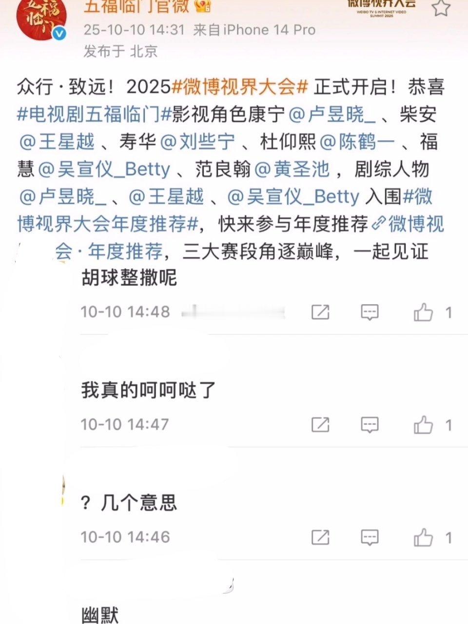 微博视界大会入围名单中,五福临门官方把黄杨钿甜和董思成去除了