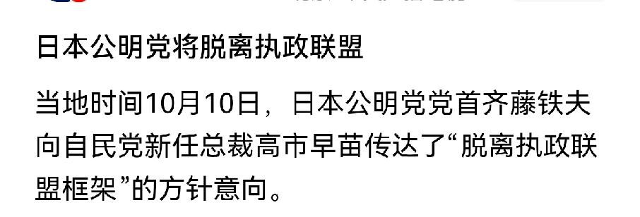 突发新闻:日本公明党“拆伙”,第一女首相或“夭折”,高市早苗高兴早了 数小时前,