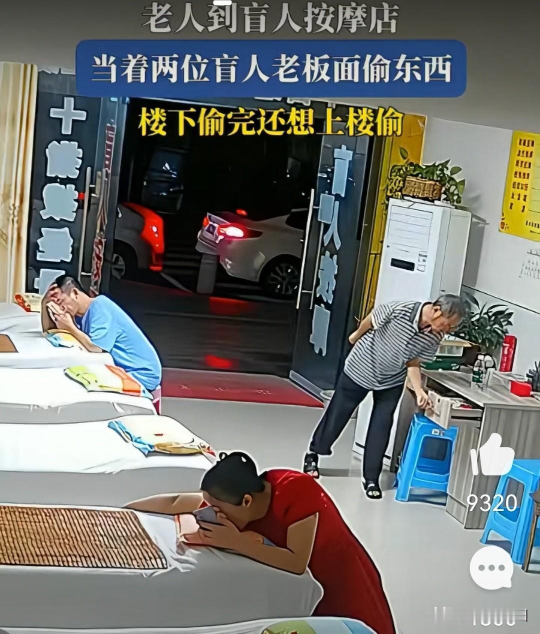 一老大爷到盲人按摩店头偷东西,为了验证盲人店是否是真的盲人,大爷还专门走到店员身边去转悠。你说这大爷还真是胆大啊,一般人还真不敢这么做。