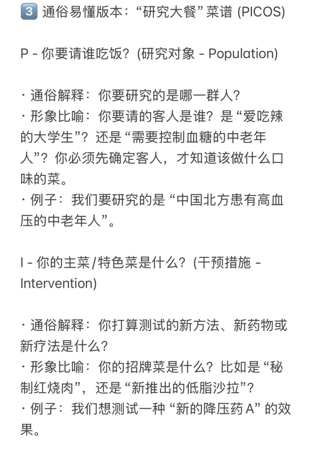 通俗易懂版本:“研究大餐”菜谱 (PICOS)