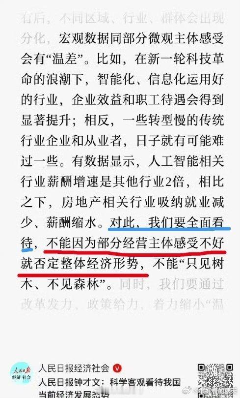要辩证的看待部分经营主体和整体经济形势的关系,不能只见树木,不见森林。