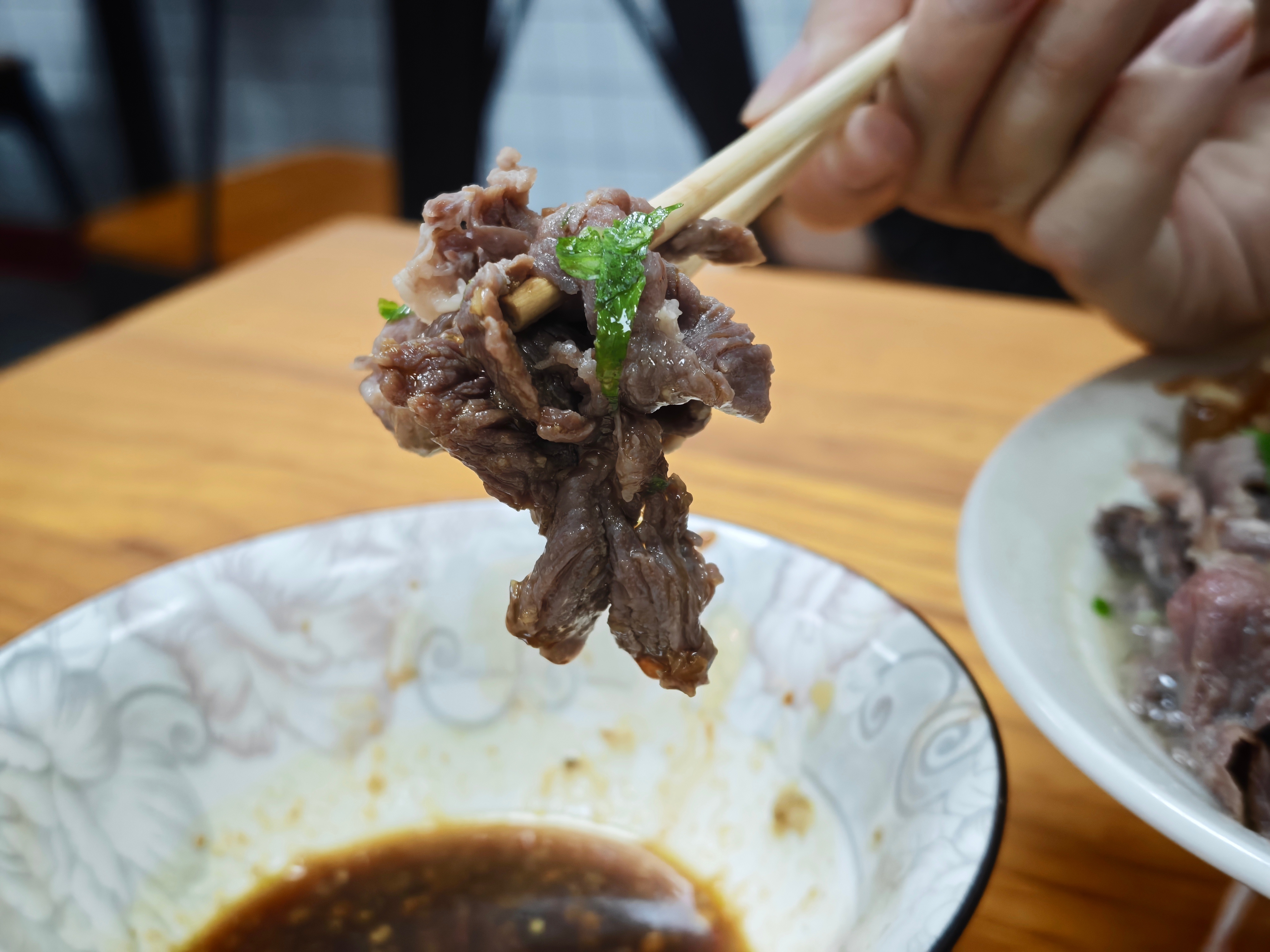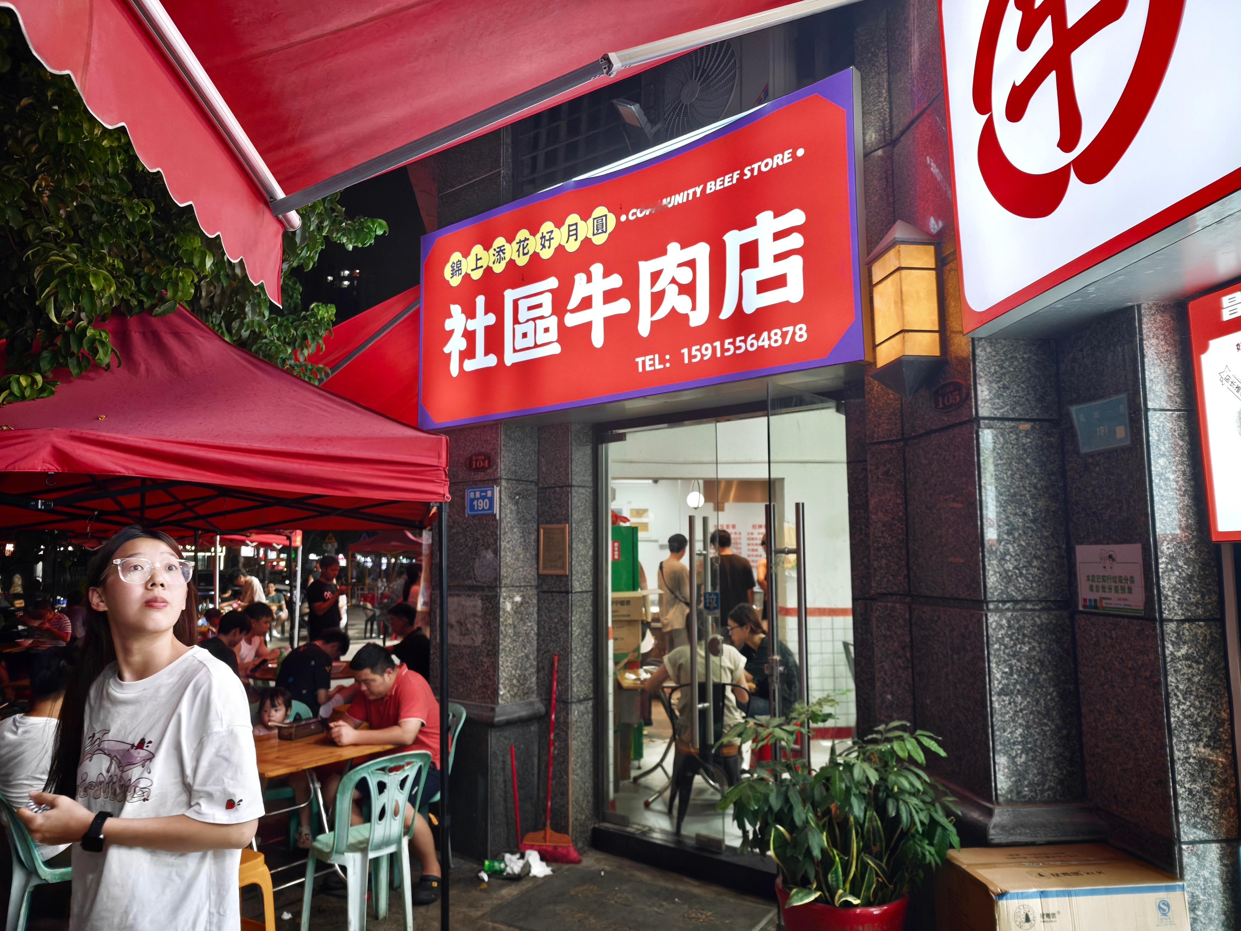 更主要的是我能从中找到一些并不有名的小店,比如说我随便找了一个社区牛肉店,看起来店面装修就像沙县拌面平均水平。