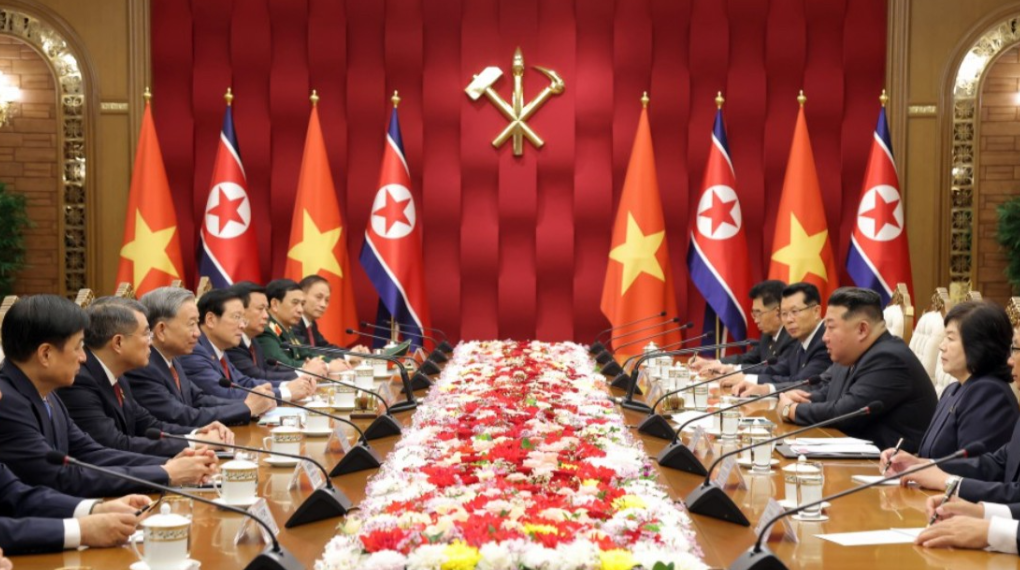 金正恩与越南的苏林、老挝的通伦会面时候,在一个大厅里,后面放置国旗,双方对座,人数相等。俄罗斯代表团虽然没见到会见消息,但俄罗斯艺术家有一场专门演出。