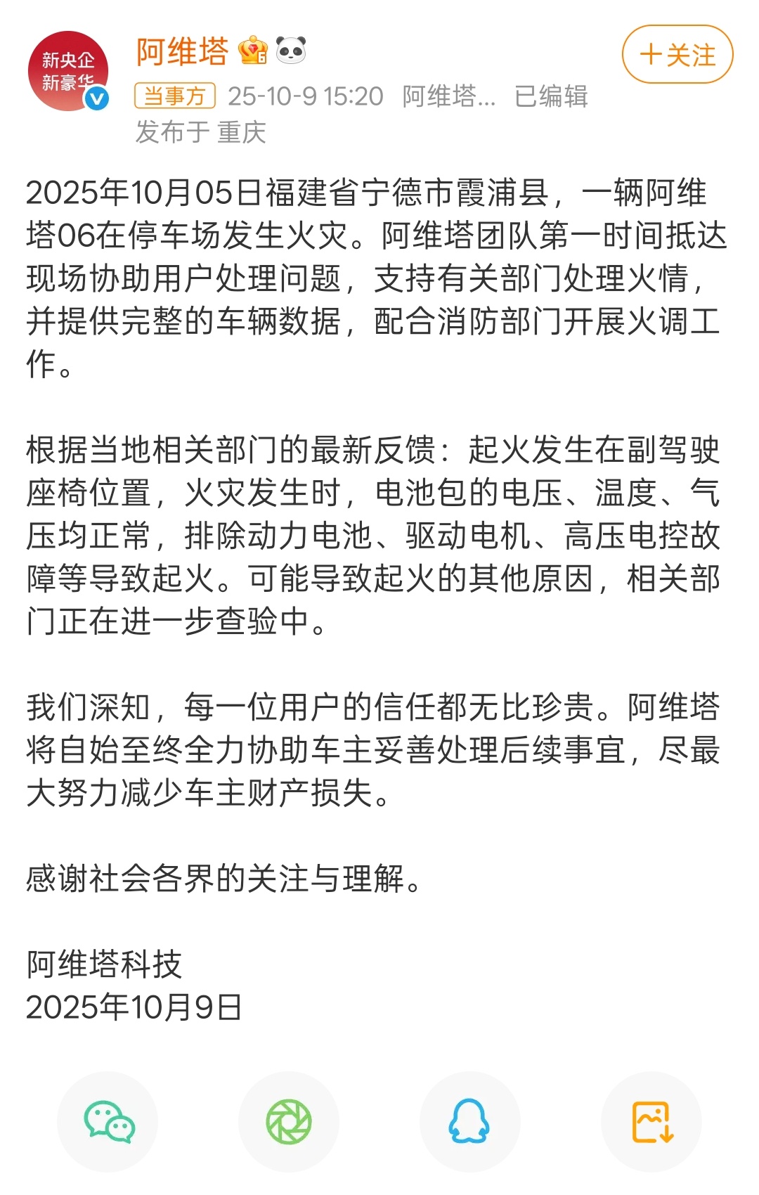 阿维塔06起火事件官方调查进展