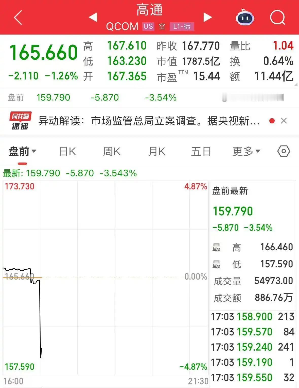 市场方面,高通美股盘前股价直线下跌。