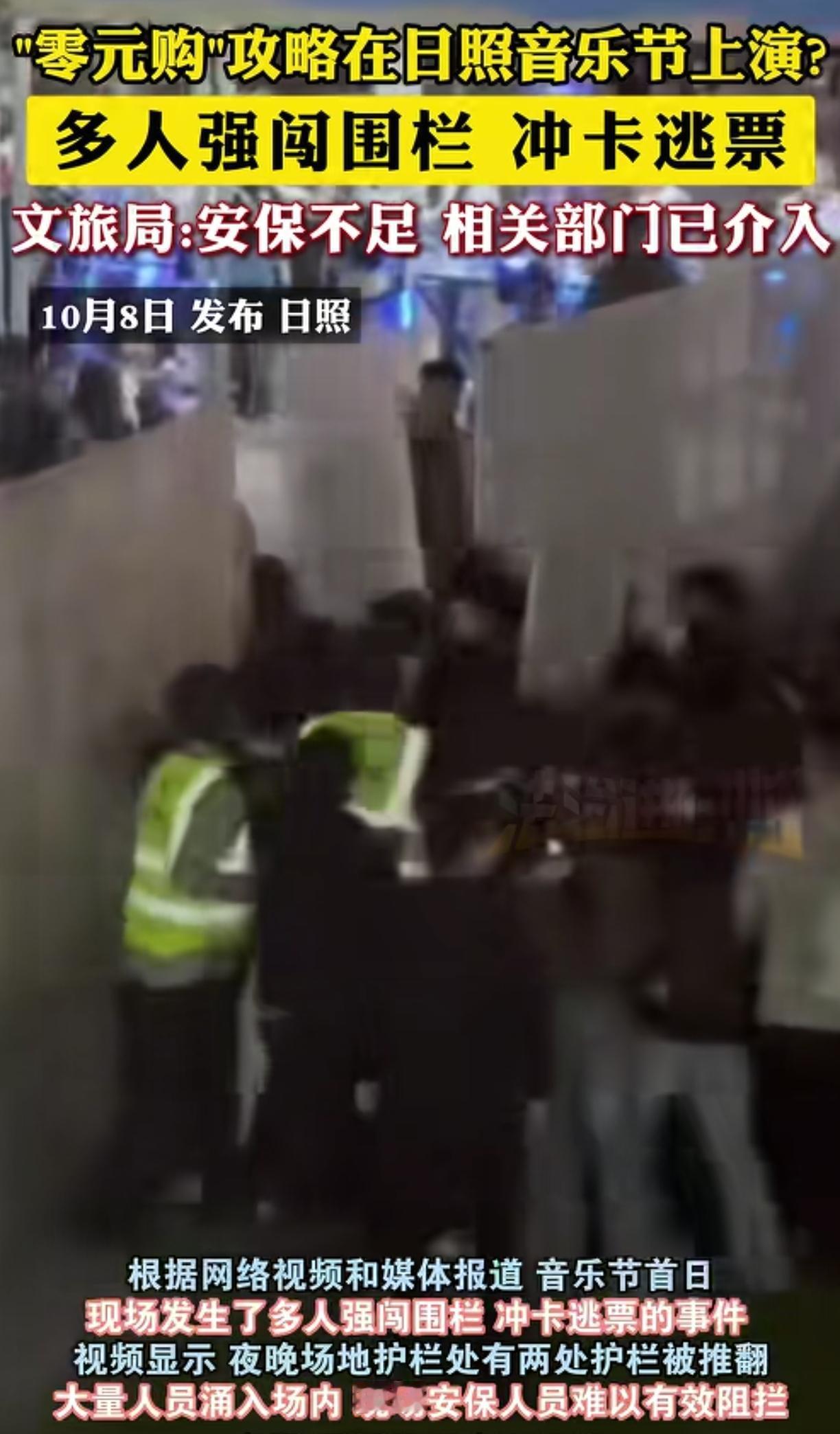 日照音乐节多人强行冲卡逃票 白天孔孟,晚上李逵宋江 这确定是山东?不是河南? 有